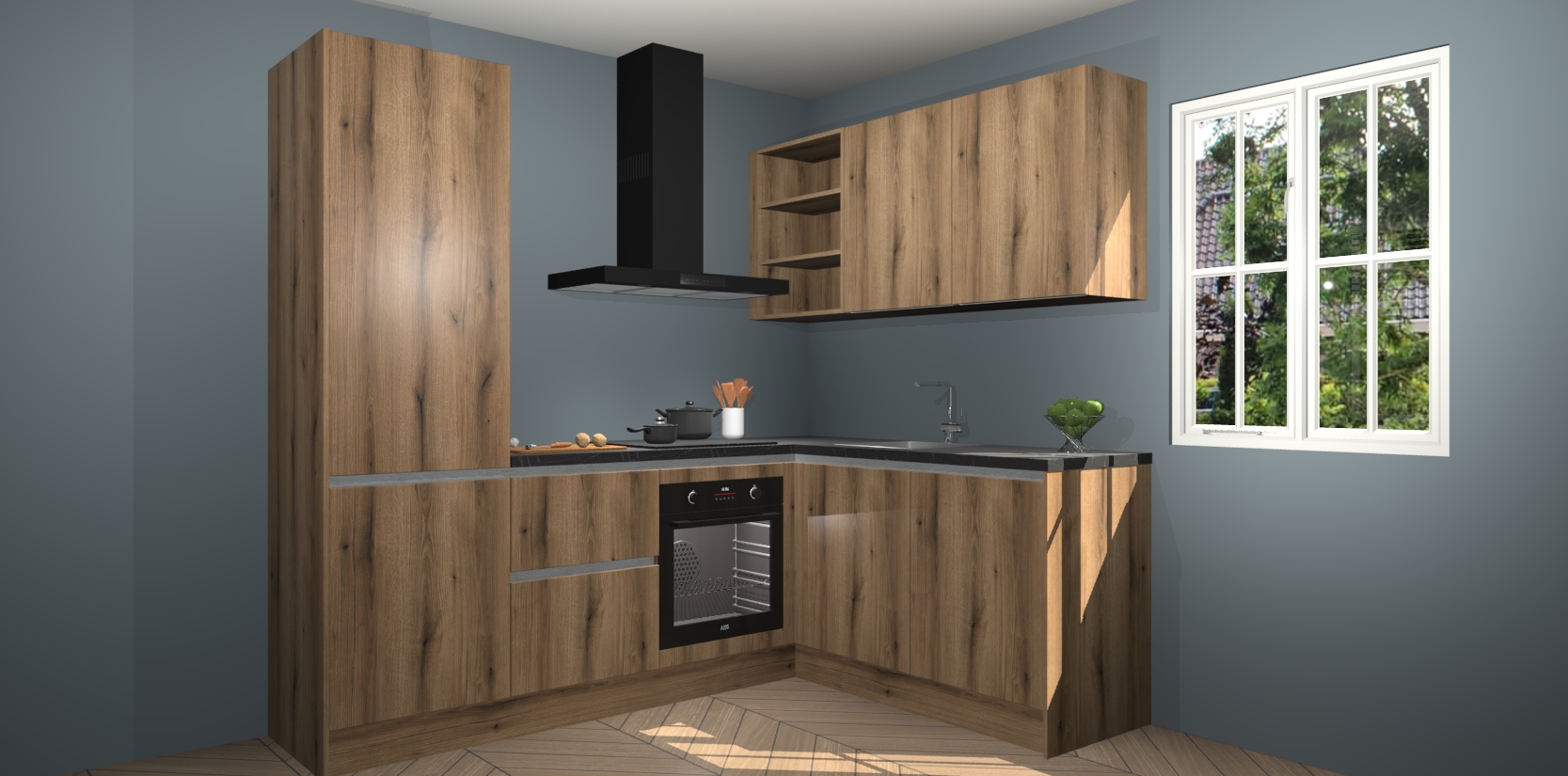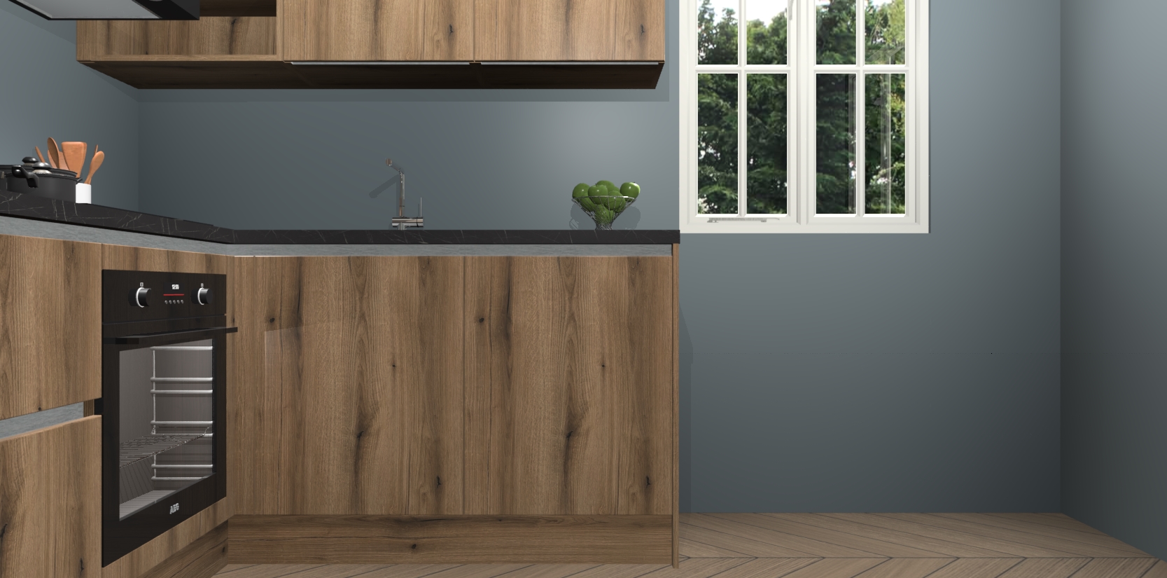 Dit model biedt u voldoende opbergruimte en vijf ingebouwde apparaten: een oven, inductiekookplaat, afzuigkap, vaatwasser en koelkast. Deze apparaten kunnen gemakkelijk worden geüpgrade naar AEG nadat u besteld heeft. De verschillende laden en kastjes bevatten softclose-deuren waardoor ze gezellig dichtvallen met een geruststellend helemaal geruisloos geluid. En dat is nog niet alles! We garanderen ook dat de prijs altijd laag blijft - dus haal nu uw Goud Eiken greeploze keuken Krakau terwijl het kan.