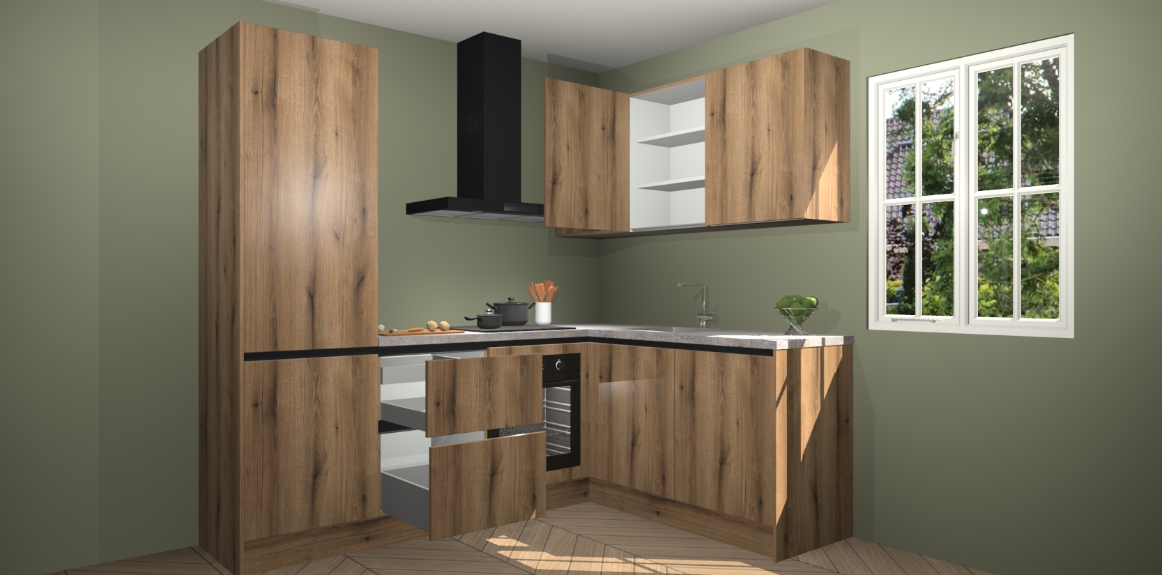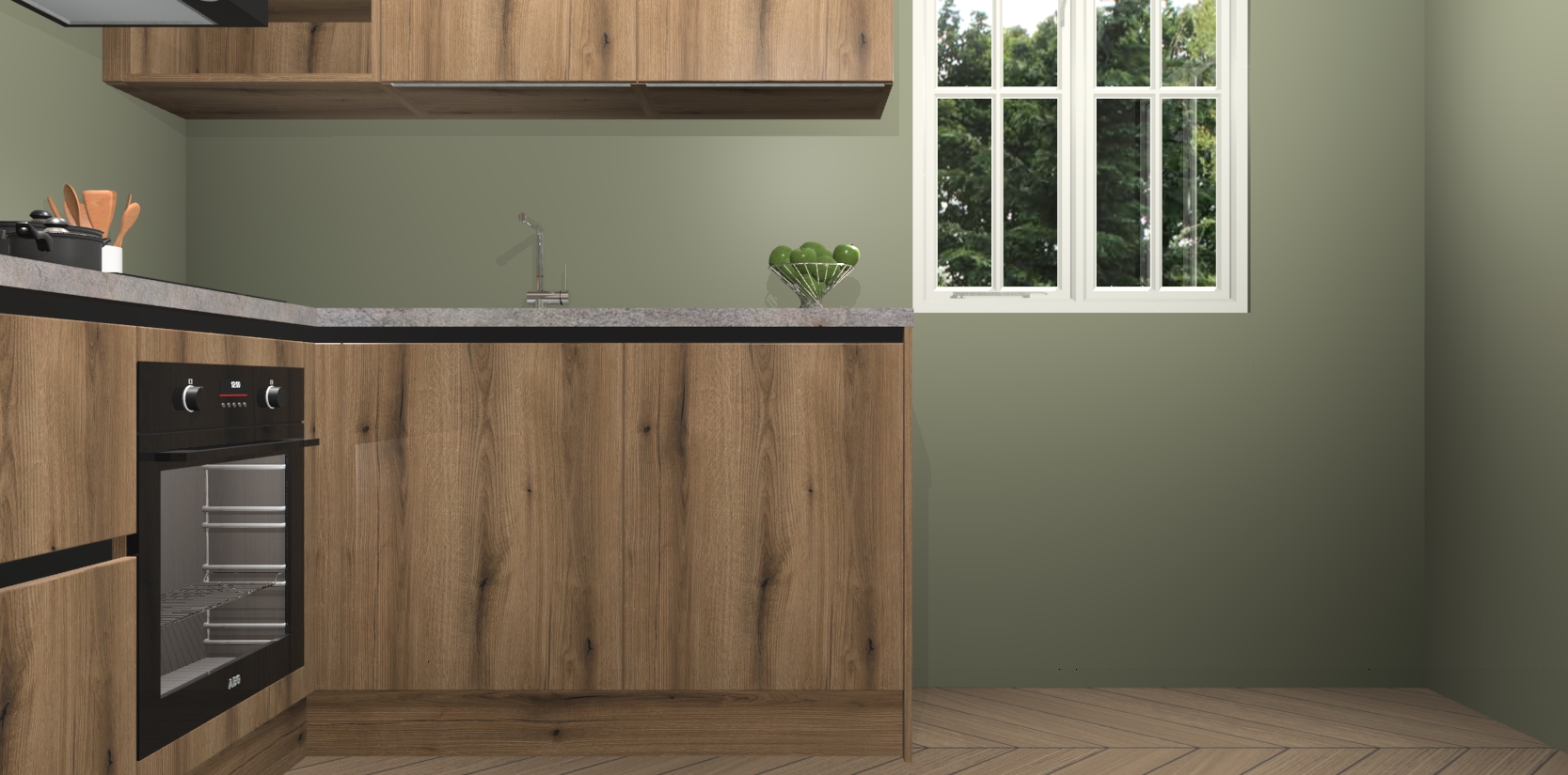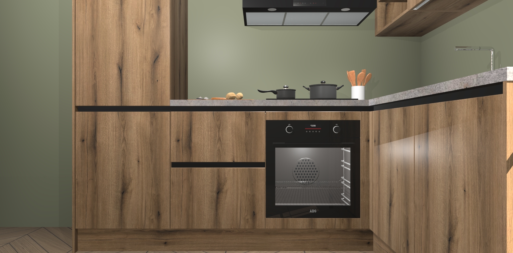Dit model biedt u voldoende opbergruimte en vijf ingebouwde apparaten: een oven, inductiekookplaat, afzuigkap, vaatwasser en koelkast. Deze apparaten kunnen gemakkelijk worden geüpgrade naar AEG nadat u besteld heeft. De verschillende laden en kastjes bevatten softclose-deuren waardoor ze gezellig dichtvallen met een geruststellend helemaal geruisloos geluid. En dat is nog niet alles! We garanderen ook dat de prijs altijd laag blijft - dus haal nu uw Goud Eiken greeploze keuken Krakau terwijl het kan.