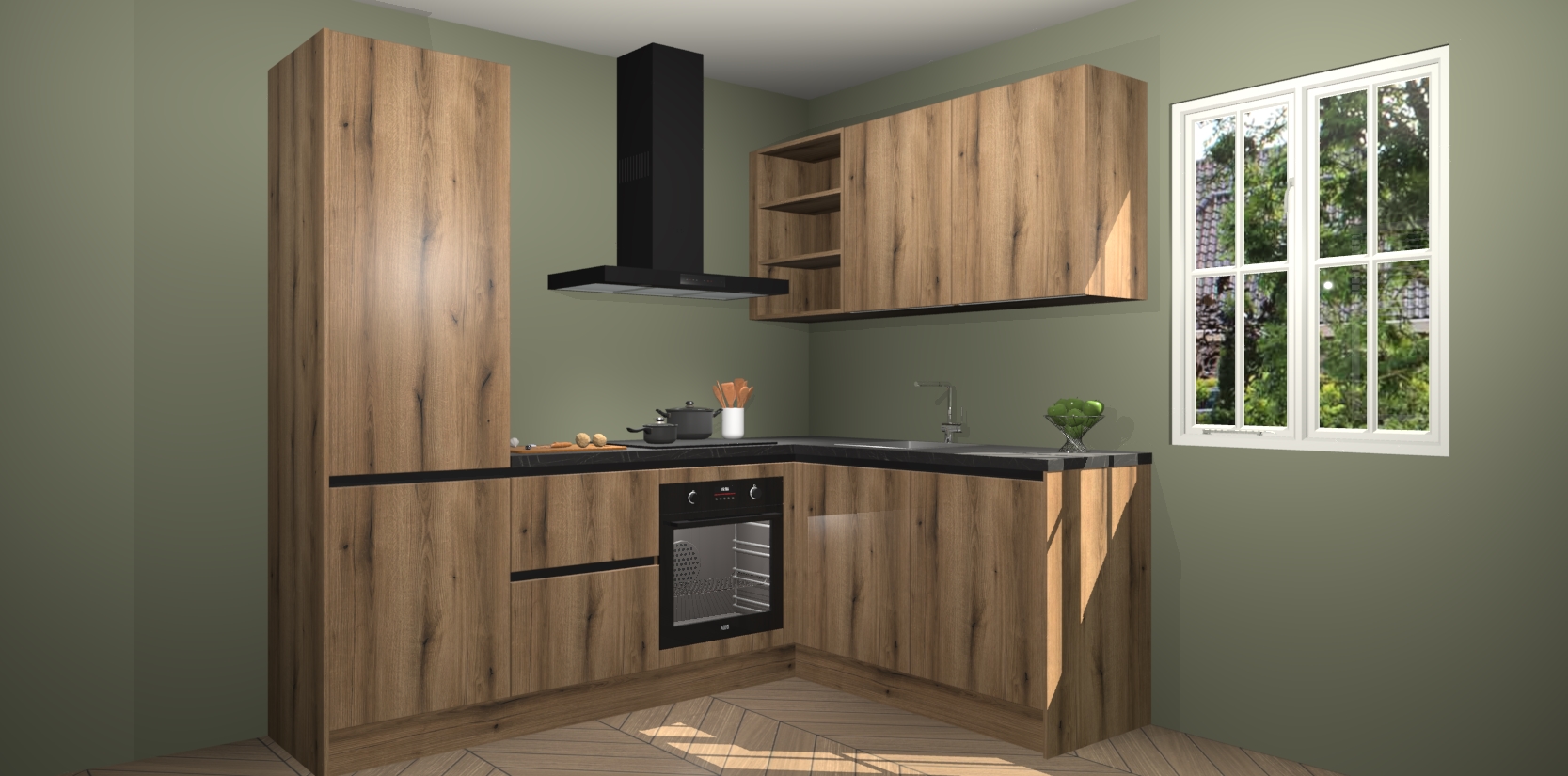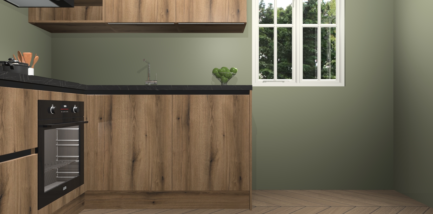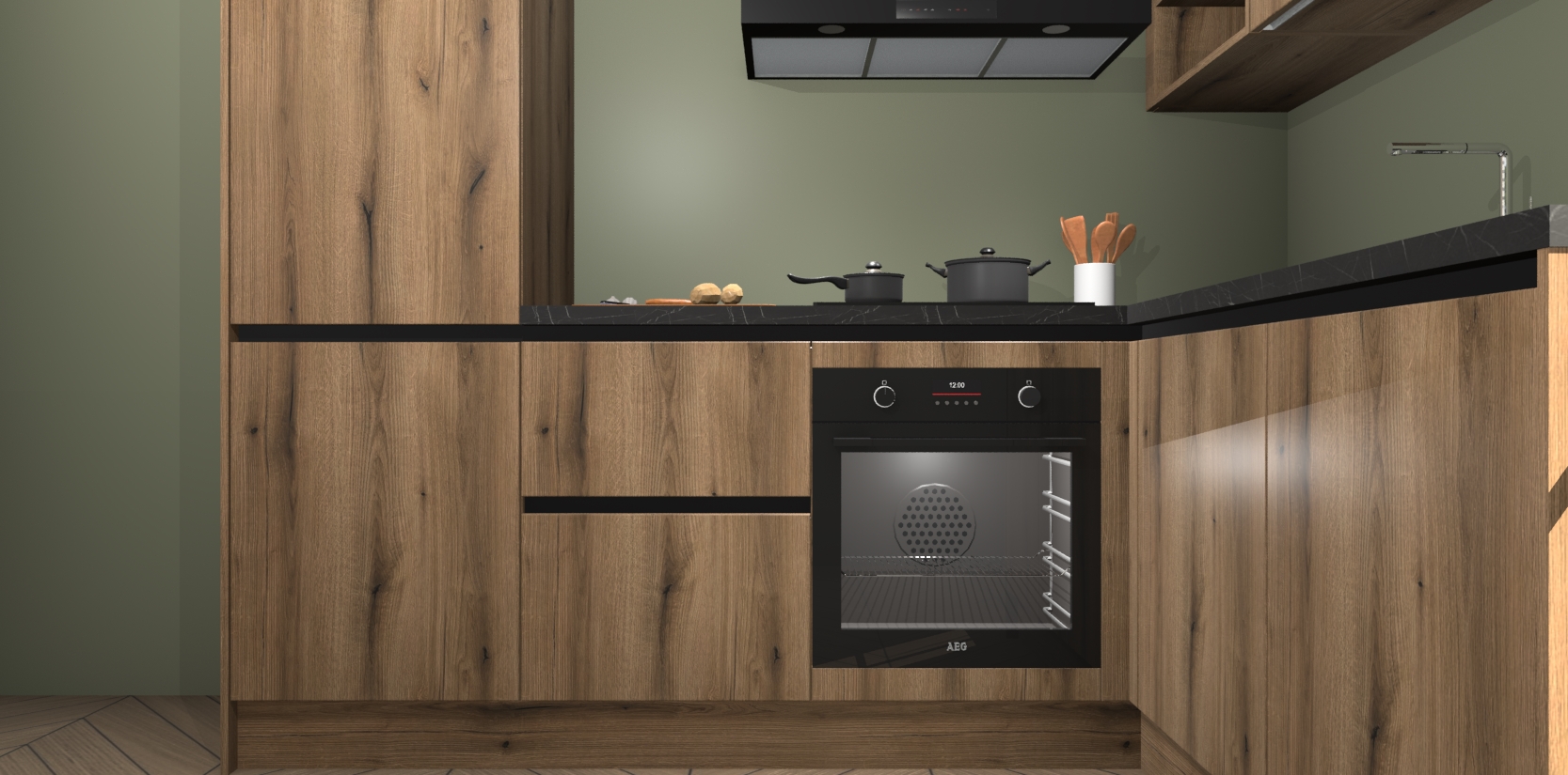 Dit model biedt u voldoende opbergruimte en vijf ingebouwde apparaten: een oven, inductiekookplaat, afzuigkap, vaatwasser en koelkast. Deze apparaten kunnen gemakkelijk worden geüpgrade naar AEG nadat u besteld heeft. De verschillende laden en kastjes bevatten softclose-deuren waardoor ze gezellig dichtvallen met een geruststellend helemaal geruisloos geluid. En dat is nog niet alles! We garanderen ook dat de prijs altijd laag blijft - dus haal nu uw Goud Eiken greeploze keuken Krakau terwijl het kan.