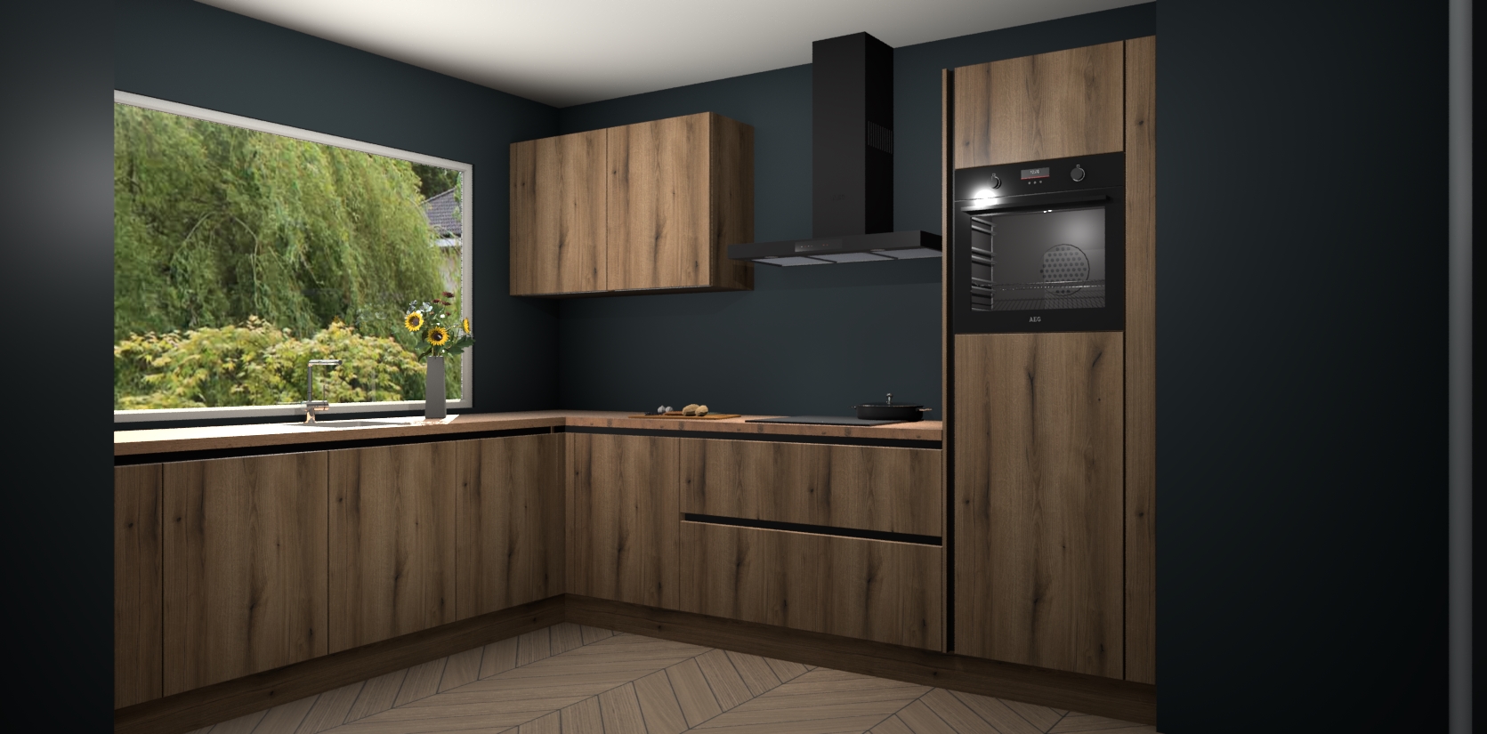 Bent u op zoek naar een onberispelijk keukenontwerp dat Duitse precisie en uitmuntende architectuur ademt? Zoek niet verder - de goud-eiken greeploze keuken Limonos biedt de perfecte moderne mix van stijl en functionaliteit.