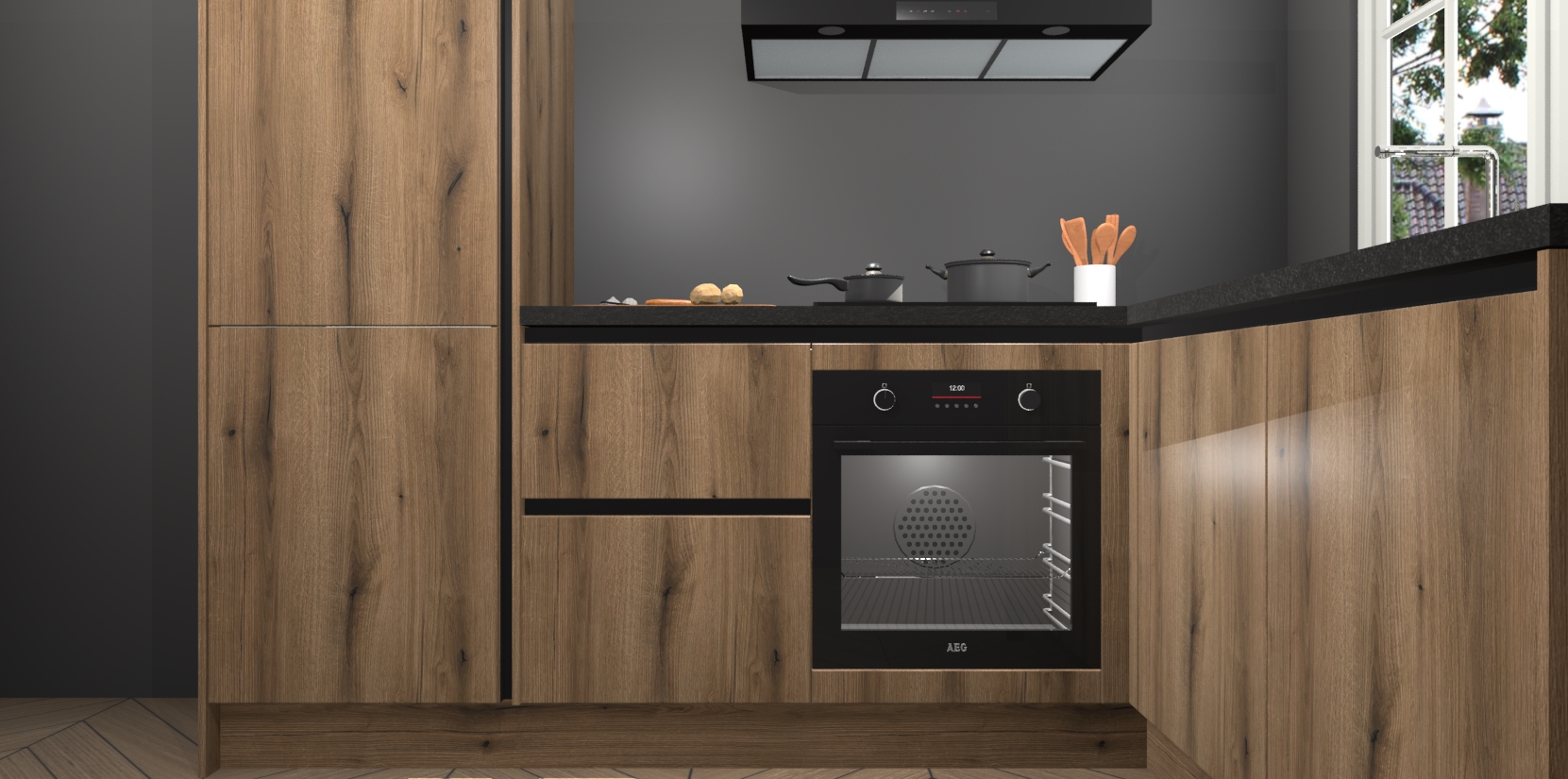 Met de Goud Eiken greeploze keuken Linz krijgt u 5 op maat gemaakte apparaten: een oven, inductiekookplaat, afzuigkap, vaatwasser en koelkast die na bestelling makkelijk worden geüpgraded naar AEG-producten. Met de zacht sluitende deuren, bent u verzekerd van eenvoudige bediening in stilte. Het kastmeubilair wordt alvast pre-assemblage geleverd waardoor u sneller met het installeren begint. Ook zijn alle deuren voorzien van softclose zodat er geen sporen op de lade blijven als u ze dicht doet. Bovendien hoeft u bij ons geen twijfels of verassingen te hebben: we hebben een vaste lage prijs waardoor u weet wat u mag verwachten bij elke bestelling.