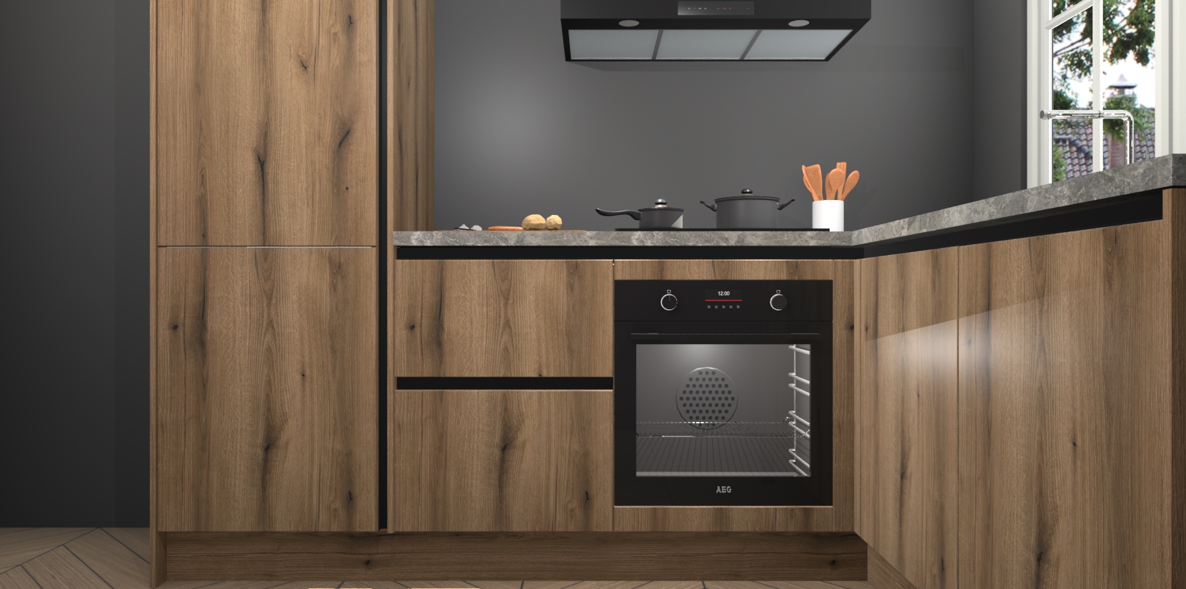 Met de Goud Eiken greeploze keuken Linz krijgt u 5 op maat gemaakte apparaten: een oven, inductiekookplaat, afzuigkap, vaatwasser en koelkast die na bestelling makkelijk worden geüpgraded naar AEG-producten. Met de zacht sluitende deuren, bent u verzekerd van eenvoudige bediening in stilte. Het kastmeubilair wordt alvast pre-assemblage geleverd waardoor u sneller met het installeren begint. Ook zijn alle deuren voorzien van softclose zodat er geen sporen op de lade blijven als u ze dicht doet. Bovendien hoeft u bij ons geen twijfels of verassingen te hebben: we hebben een vaste lage prijs waardoor u weet wat u mag verwachten bij elke bestelling.