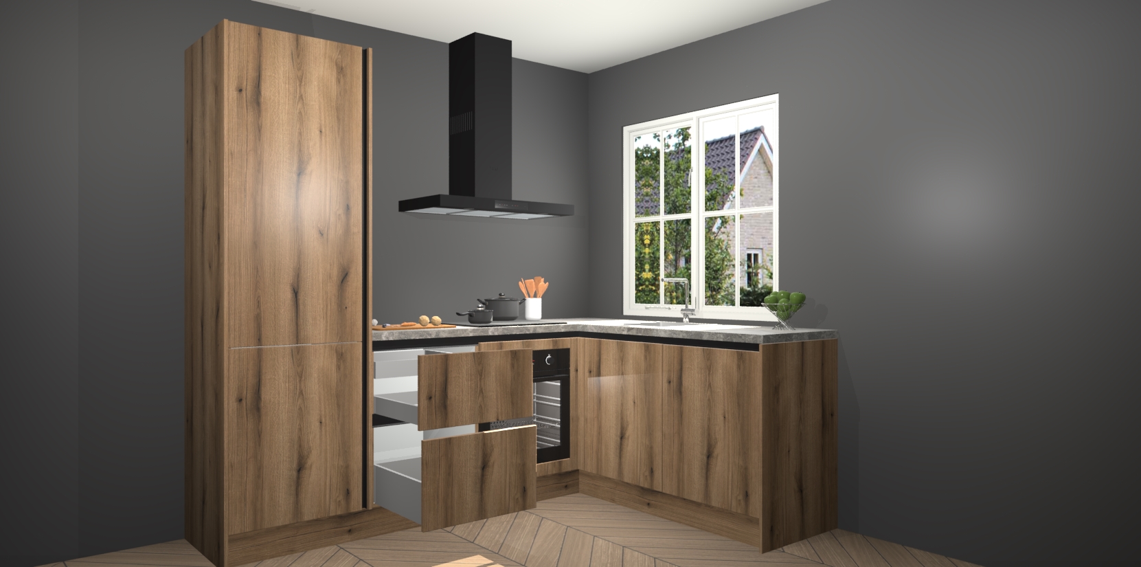 Het grote voordeel is dat uw Goud Eiken greeploze keuken Linz wordt geleverd met een beperkte levertijd van slechts 7 weken! Daarom moet u er snel bij zijn; want als u dit fantastische meubilair mist, kan niets anders dan spijt voelen. Ga direct aan de slag met uw droomkeuken door nu de Goud Eiken greeploze keuken Linz te bestellen - duizend woorden plaatjes in één woord: perfectie.