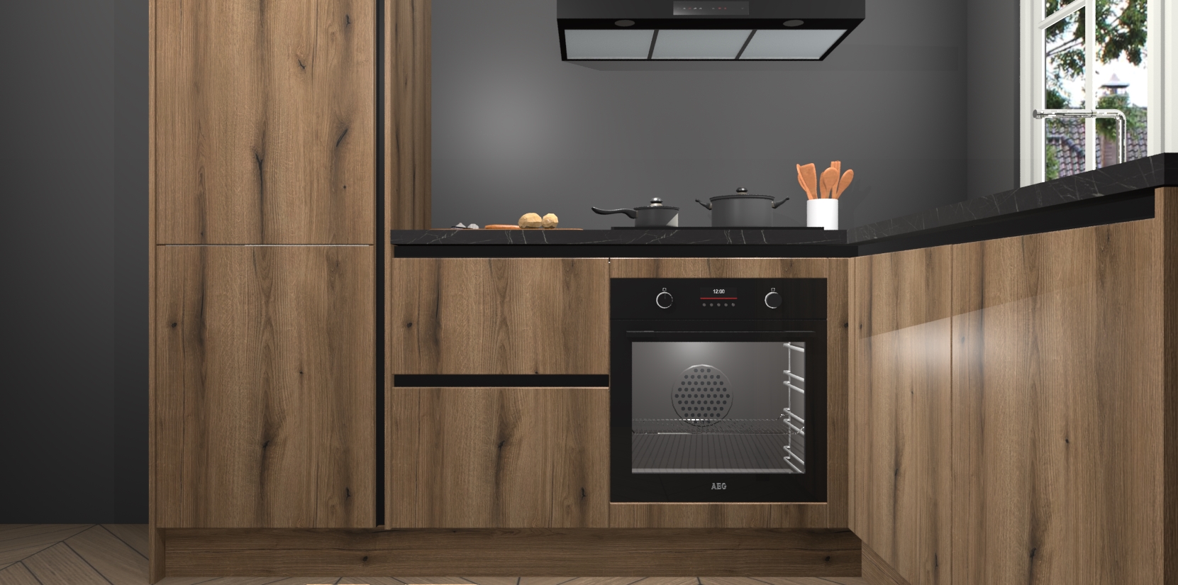 Met de Goud Eiken greeploze keuken Linz krijgt u 5 op maat gemaakte apparaten: een oven, inductiekookplaat, afzuigkap, vaatwasser en koelkast die na bestelling makkelijk worden geüpgraded naar AEG-producten. Met de zacht sluitende deuren, bent u verzekerd van eenvoudige bediening in stilte. Het kastmeubilair wordt alvast pre-assemblage geleverd waardoor u sneller met het installeren begint. Ook zijn alle deuren voorzien van softclose zodat er geen sporen op de lade blijven als u ze dicht doet. Bovendien hoeft u bij ons geen twijfels of verassingen te hebben: we hebben een vaste lage prijs waardoor u weet wat u mag verwachten bij elke bestelling.