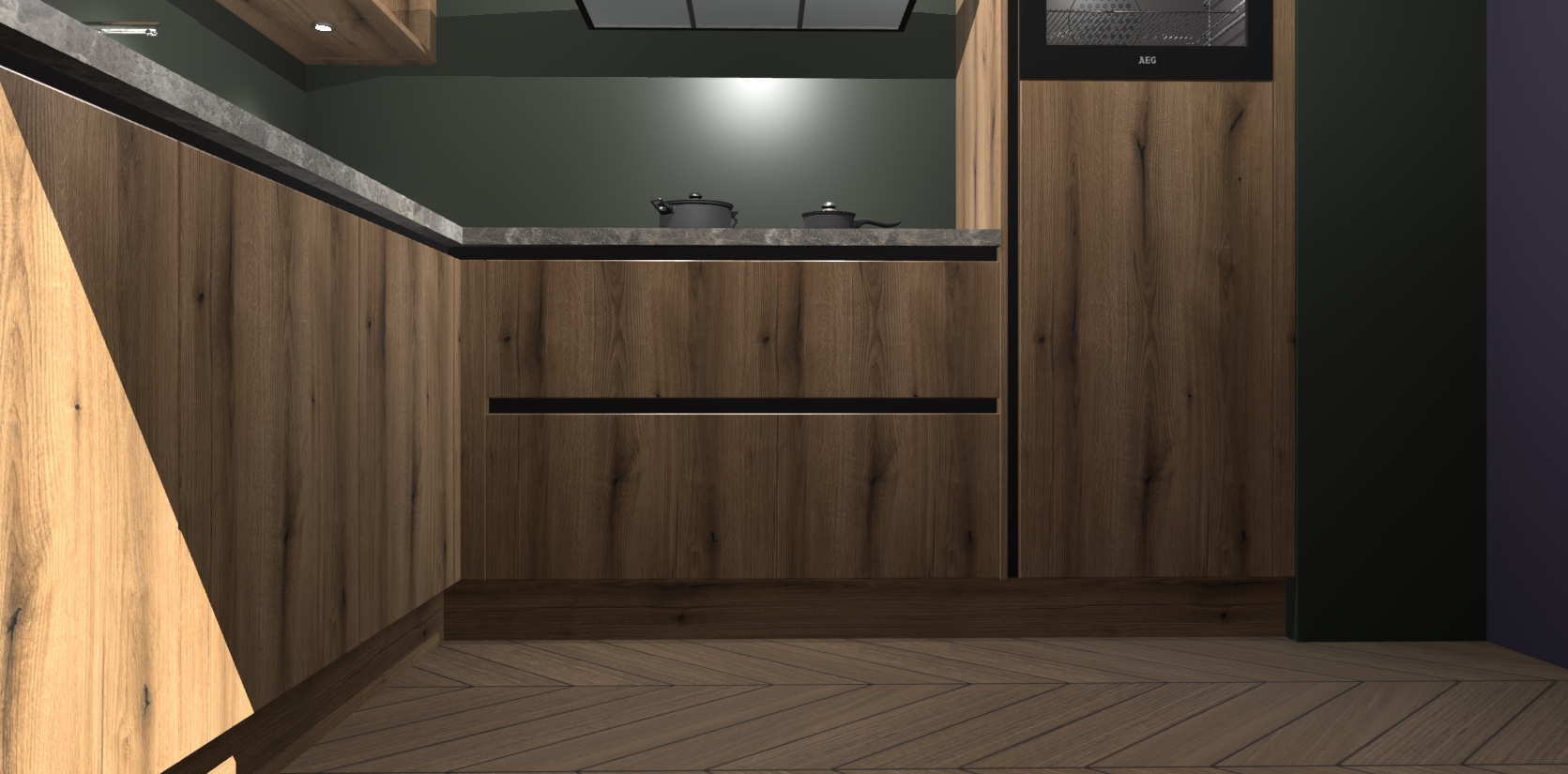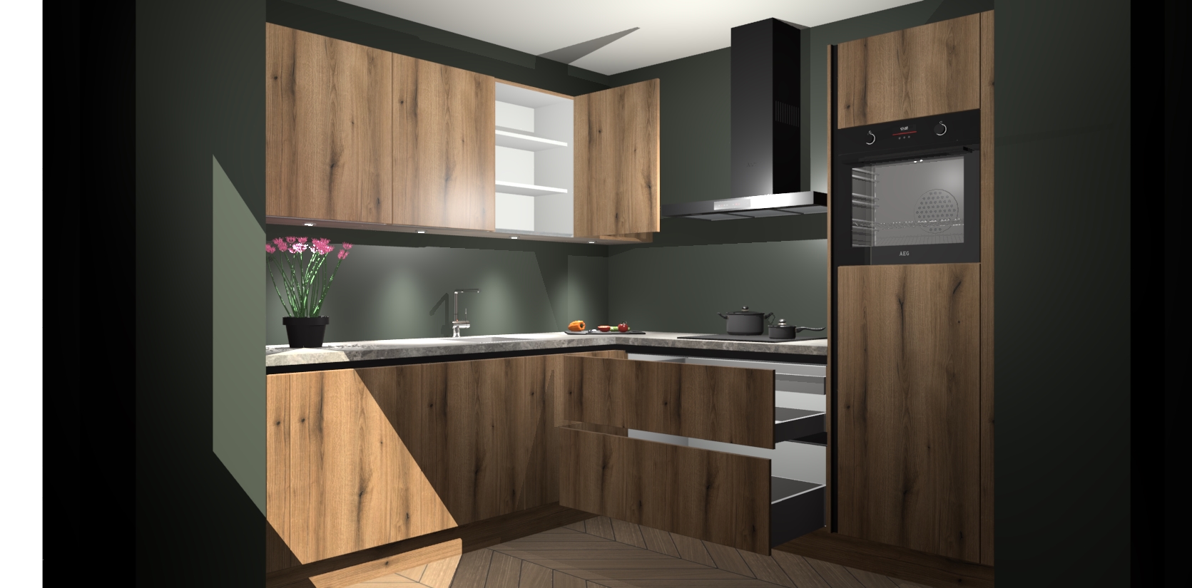Met een modern, tijdloos design en ruime opslagruimte, zult u zich in no-time thuis voelen in uw nieuwe keuken. Uw leven wordt eenvoudiger met de soft-close deuren die voor het ultieme stille comfort zorgen - geen geluid dat u stoort terwijl u kookt. Ook is de keuken voorzien van 5 ingebouwde apparaten: een oven, inductie kookplaat, afzuigkap, vaatwasser en koelkast. Deze kunnen gemakkelijk na bestelling worden bijgewerkt naar AEG - waardoor uw luxe ervaring compleet is.
