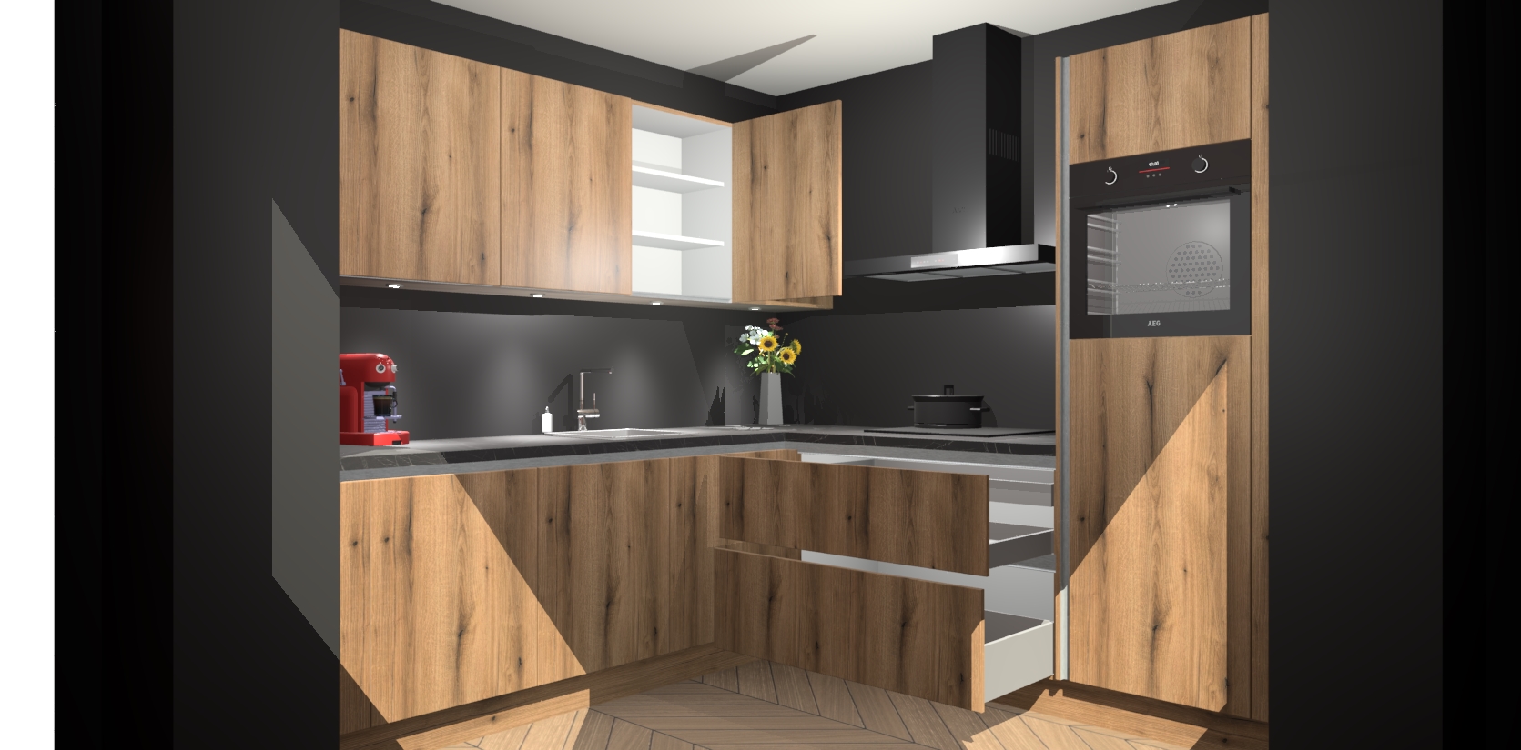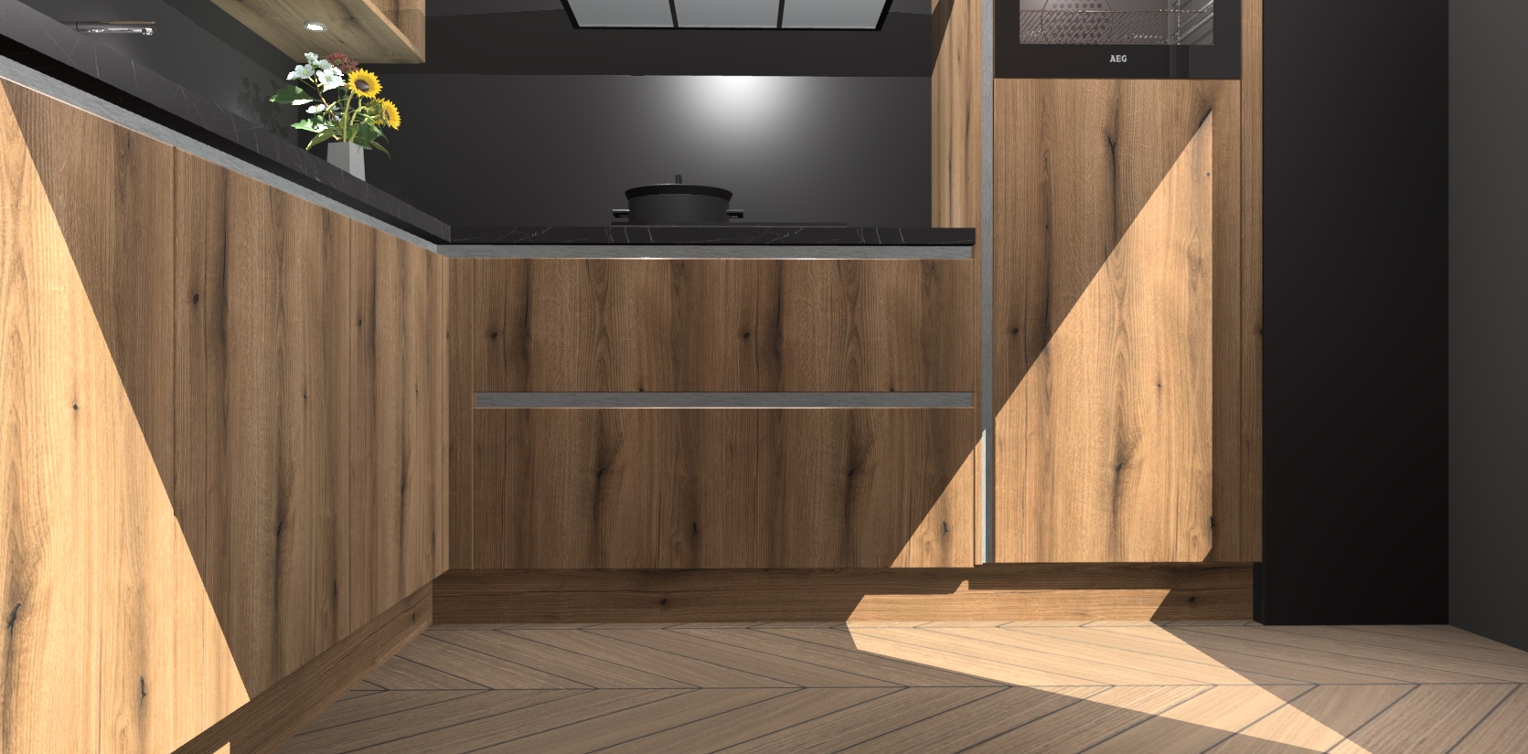 Met een modern, tijdloos design en ruime opslagruimte, zult u zich in no-time thuis voelen in uw nieuwe keuken. Uw leven wordt eenvoudiger met de soft-close deuren die voor het ultieme stille comfort zorgen - geen geluid dat u stoort terwijl u kookt. Ook is de keuken voorzien van 5 ingebouwde apparaten: een oven, inductie kookplaat, afzuigkap, vaatwasser en koelkast. Deze kunnen gemakkelijk na bestelling worden bijgewerkt naar AEG - waardoor uw luxe ervaring compleet is.