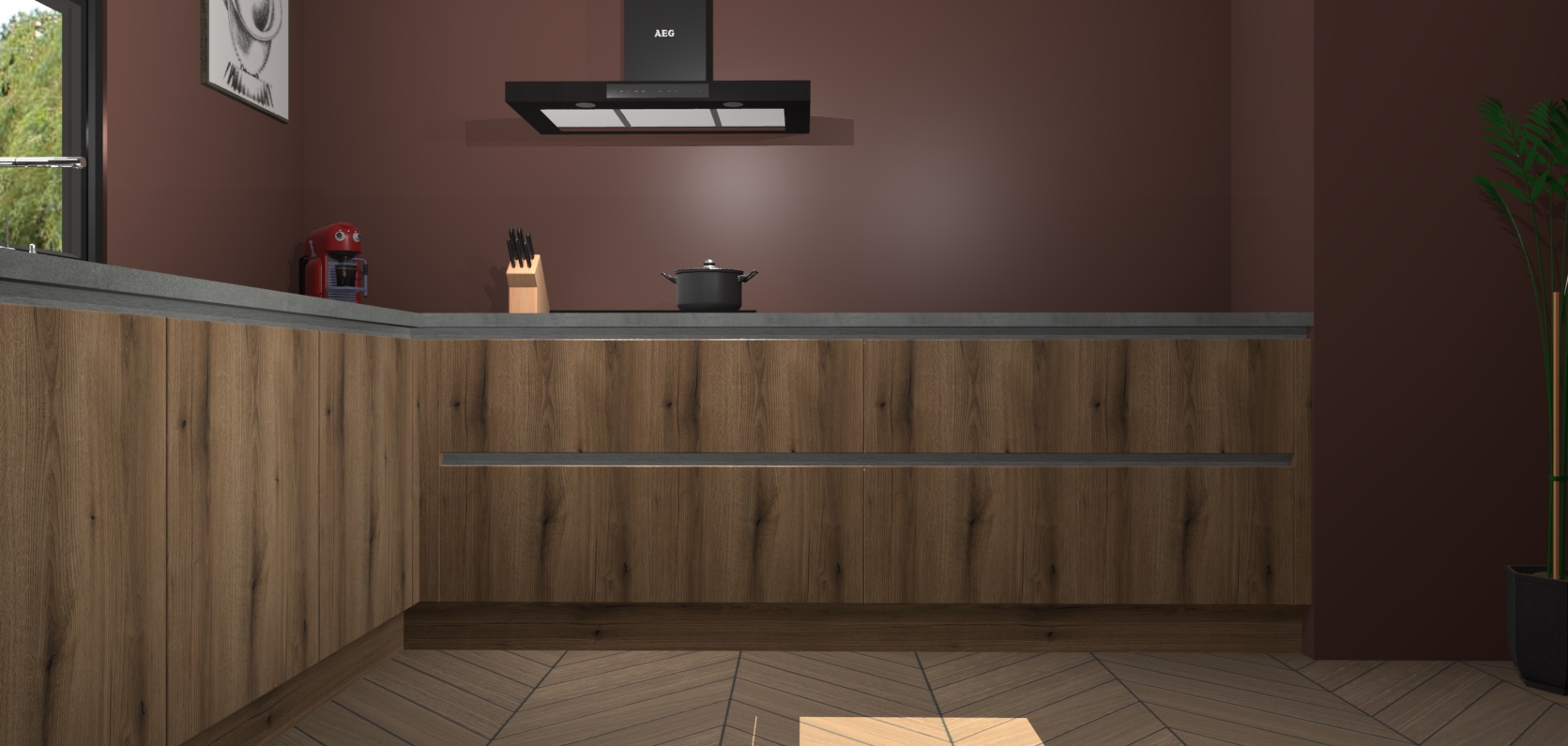 Welkom bij de goud eiken greeploze keuken Lublin. Deze prachtige keuken zal de komende jaren het middelpunt van de belangstelling in uw huis zijn. Uitgerust met vijf inbouwapparaten komt u nooit kookgereedschap tekort. Bovendien geeft de warme houtlook elke ruimte een uitnodigende en tijdloze uitstraling.