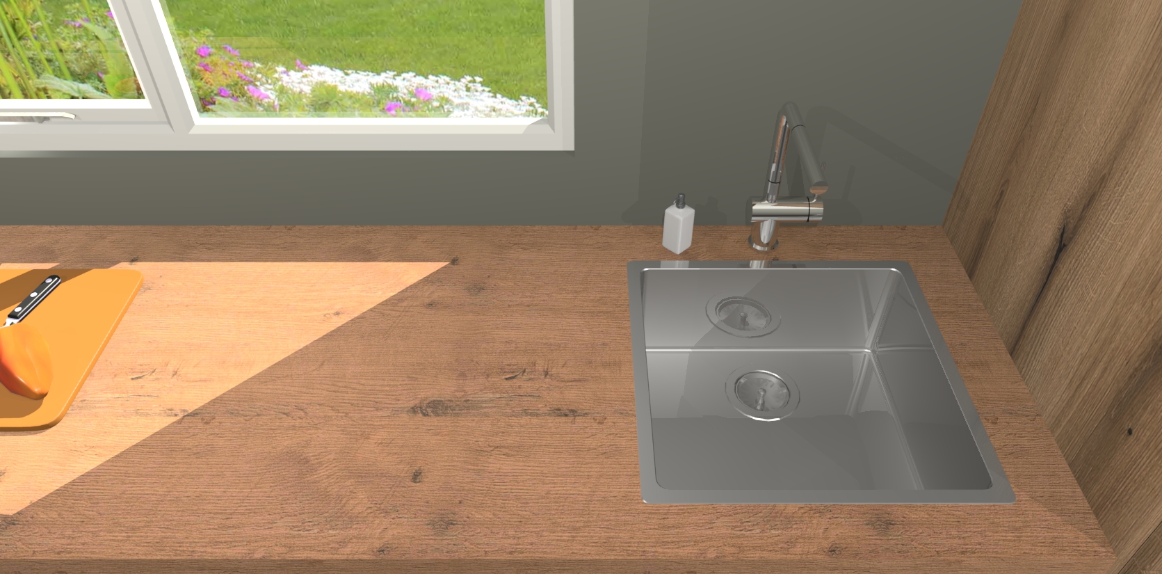- De spoelbak is nog niet in gevreesd. Dit dient tijdens het werk gedaan te worden