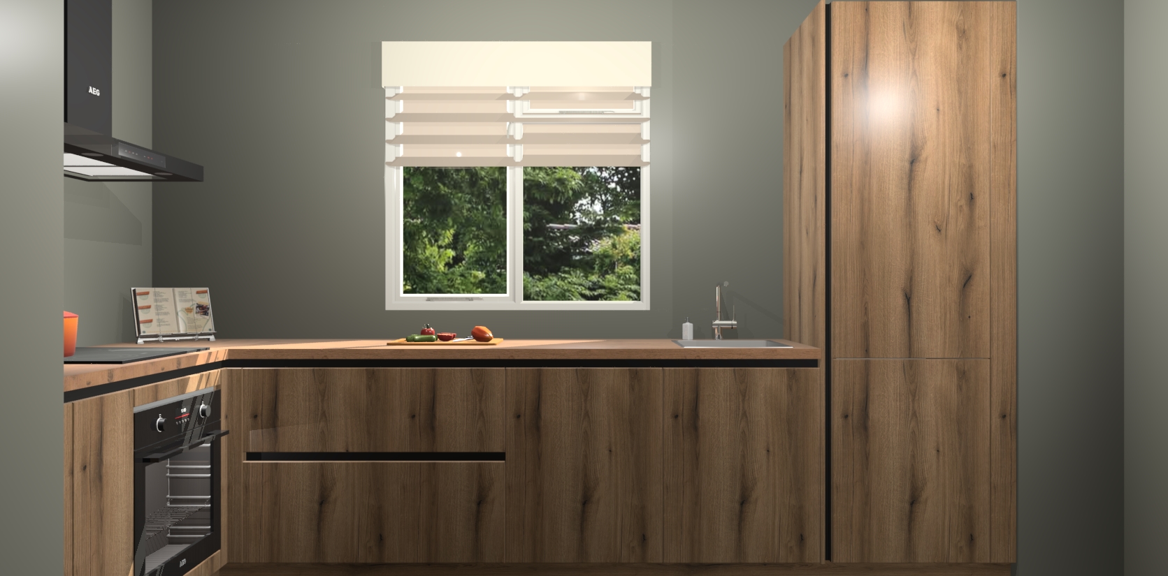 Moedige modernisten! De Goud Eiken greeploze keuken Luzern is het perfecte antwoord op al uw keukendromen. Dit geraffineerde, tijdloze ontwerp combineert strakke greeploze kasten zodat u die dure look krijgt zonder het dure prijskaartje. We weten dat planning en uitvoering de sleutels zijn tot een geslaagde keukenrenovatie, dus hebben we ervoor gezorgd dat we vijf inbouwapparaten in ons pakket hebben: een oven, inductiekookplaat, afzuigkap, vaatwasser en koelkast. Deze kunnen na bestelling gemakkelijk worden uitgebreid voor nog meer gemak.