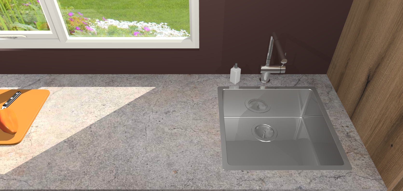 - De spoelbak is nog niet in gevreesd. Dit dient tijdens het werk gedaan te worden