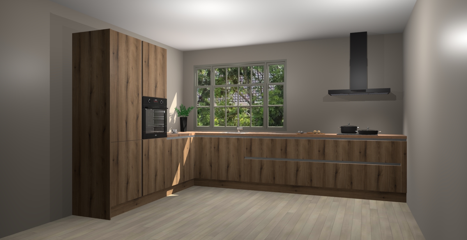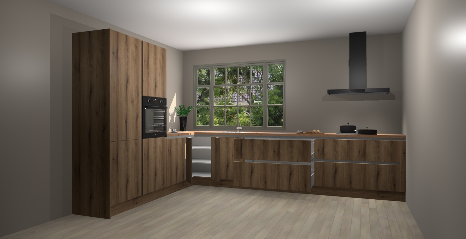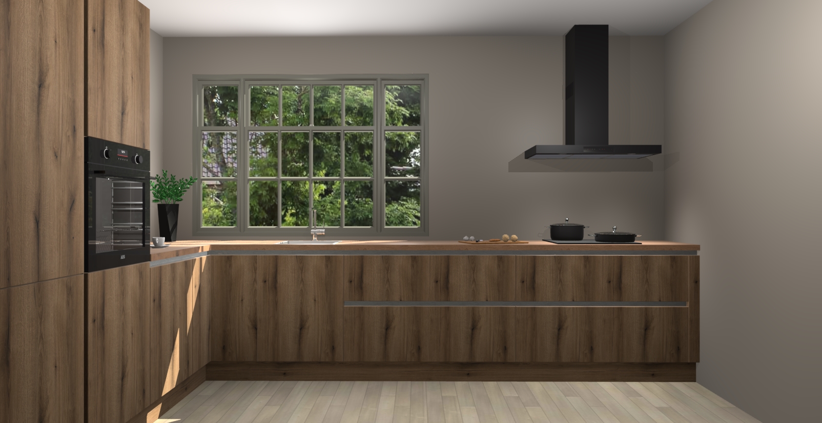 Kom dichtbij de perfecte keuken van uw dromen met de Goud Eiken greeploze keuken Malaga. Met een prachtige houtlook en eigentijds ontwerp, straalt deze keuken warmte en sfeer uit. Of u nu liefhebber bent van traditionele of moderne stijlen, er is genoeg ruimte om aan al uw behoeften te voldoen.