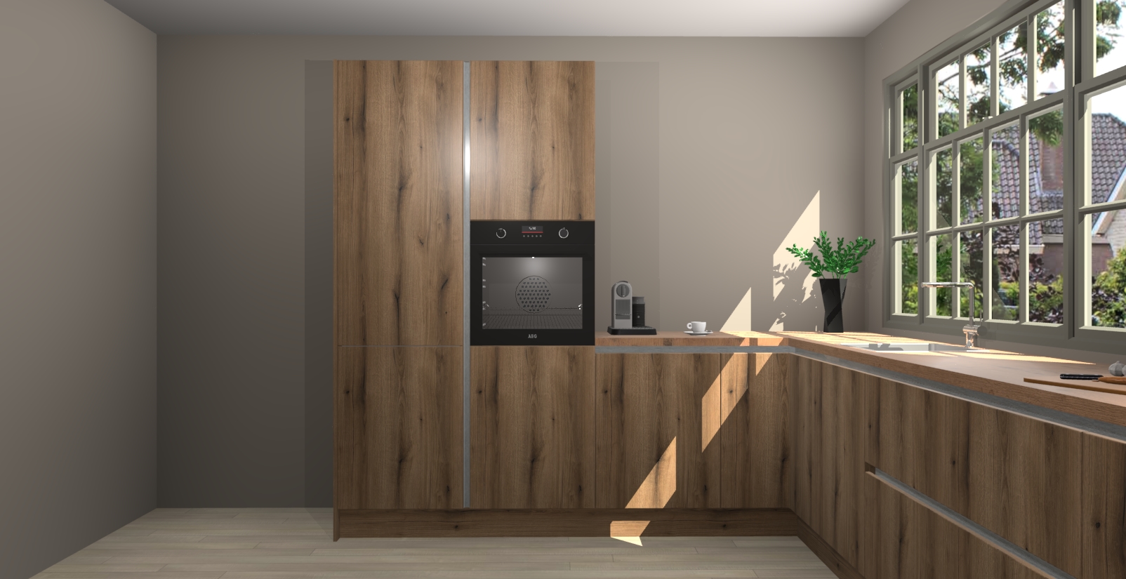 Heeft u nog apparatuur nodig? Geen probleem: de Goud Eiken greeploze keuken Malaga bevat vijf ingebouwde apparaten - een oven, inductiekookplaat, afzuigkap, vaatwasser en koelkast - die gemakkelijk kunnen worden bijgewerkt naar AEG na bestelling. En als dat nog niet genoeg is; onze kasten worden pre-geassembleerd geleverd en zijn verkrijgbaar tegen een vastgeroeste lage prijs! U hoeft nooit meer te zoeken naar goede kwaliteit en service want onze producten hebben echt Duitse kwaliteit.