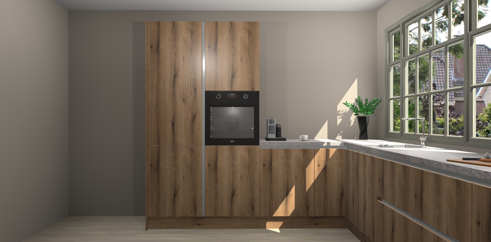 Heeft u nog apparatuur nodig? Geen probleem: de Goud Eiken greeploze keuken Malaga bevat vijf ingebouwde apparaten - een oven, inductiekookplaat, afzuigkap, vaatwasser en koelkast - die gemakkelijk kunnen worden bijgewerkt naar AEG na bestelling. En als dat nog niet genoeg is; onze kasten worden pre-geassembleerd geleverd en zijn verkrijgbaar tegen een vastgeroeste lage prijs! U hoeft nooit meer te zoeken naar goede kwaliteit en service want onze producten hebben echt Duitse kwaliteit.