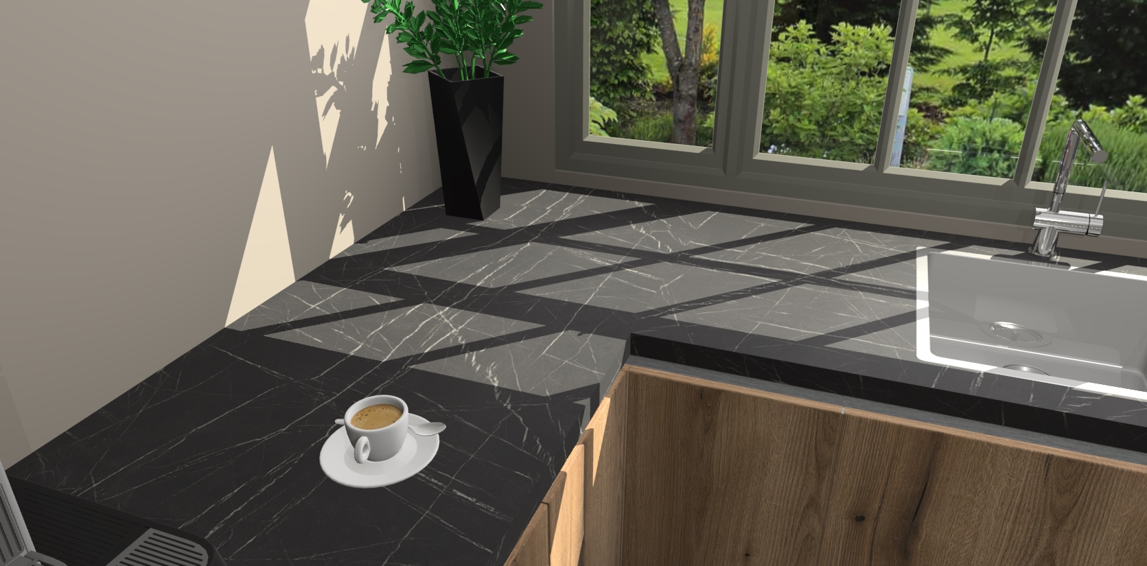 - Bij een hoekwerkblad zijn de hoeken in gevreesd en op maat gemaakt