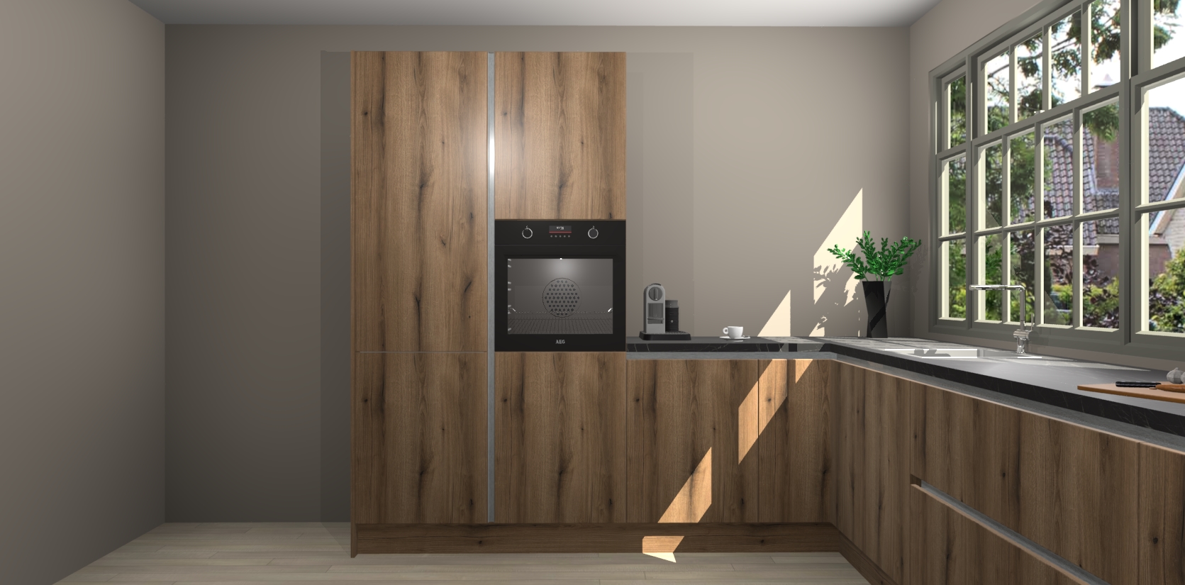 Heeft u nog apparatuur nodig? Geen probleem: de Goud Eiken greeploze keuken Malaga bevat vijf ingebouwde apparaten - een oven, inductiekookplaat, afzuigkap, vaatwasser en koelkast - die gemakkelijk kunnen worden bijgewerkt naar AEG na bestelling. En als dat nog niet genoeg is; onze kasten worden pre-geassembleerd geleverd en zijn verkrijgbaar tegen een vastgeroeste lage prijs! U hoeft nooit meer te zoeken naar goede kwaliteit en service want onze producten hebben echt Duitse kwaliteit.