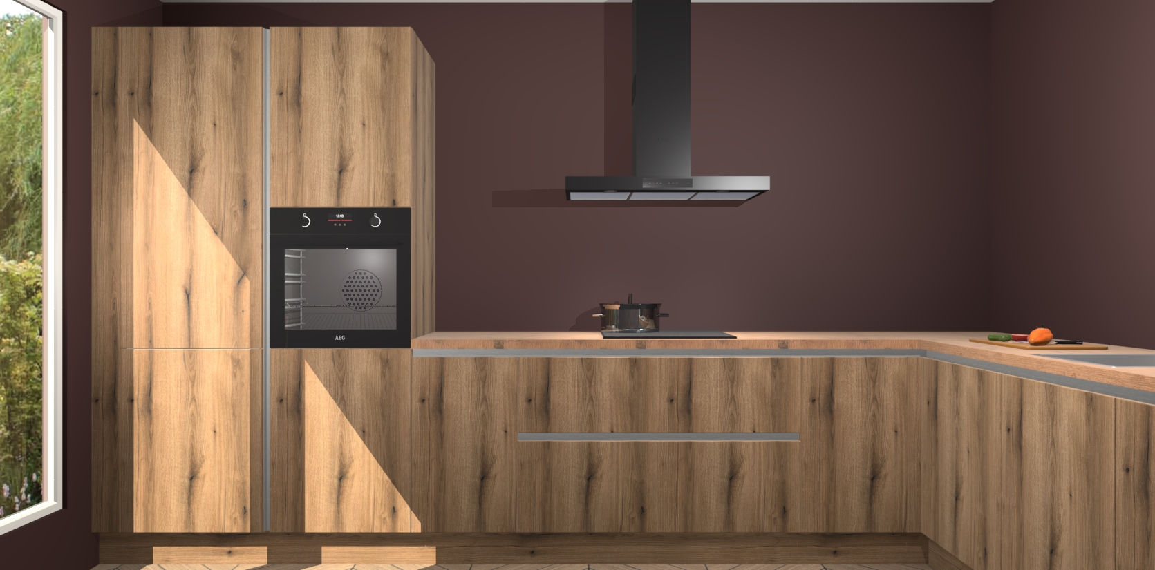 Met een modern, tijdloos design en ruime opslagruimte, zult u zich in no-time thuis voelen in uw nieuwe keuken. Uw leven wordt eenvoudiger met de soft-close deuren die voor het ultieme stille comfort zorgen - geen geluid dat u stoort terwijl u kookt. Ook is de keuken voorzien van 5 ingebouwde apparaten: een oven, inductie kookplaat, afzuigkap, vaatwasser en koelkast. Deze kunnen gemakkelijk na bestelling worden bijgewerkt naar AEG - waardoor uw luxe ervaring compleet is.