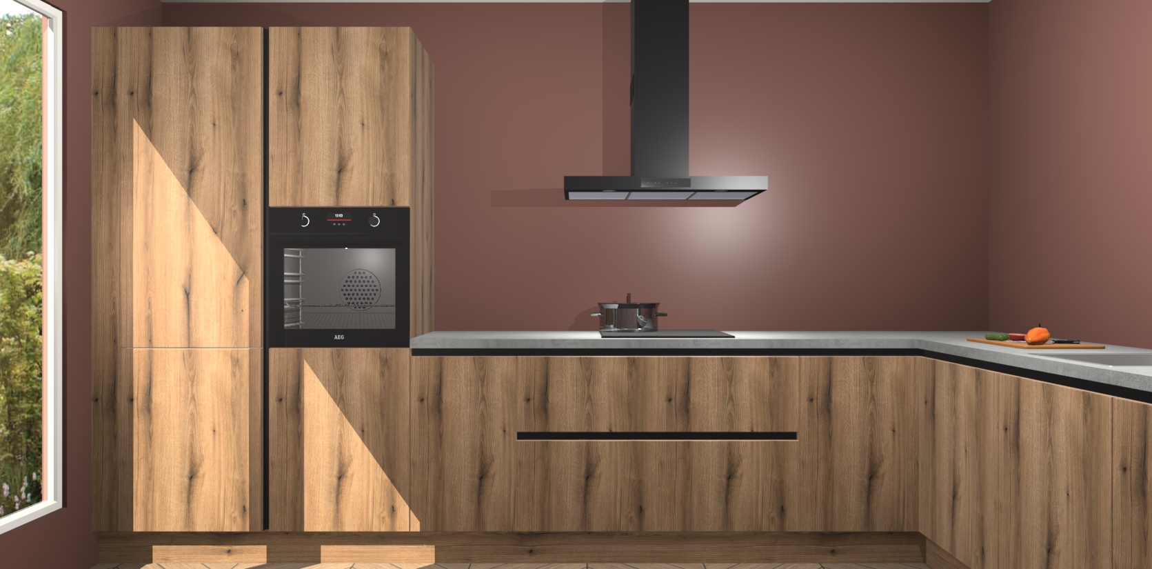 Met een modern, tijdloos design en ruime opslagruimte, zult u zich in no-time thuis voelen in uw nieuwe keuken. Uw leven wordt eenvoudiger met de soft-close deuren die voor het ultieme stille comfort zorgen - geen geluid dat u stoort terwijl u kookt. Ook is de keuken voorzien van 5 ingebouwde apparaten: een oven, inductie kookplaat, afzuigkap, vaatwasser en koelkast. Deze kunnen gemakkelijk na bestelling worden bijgewerkt naar AEG - waardoor uw luxe ervaring compleet is.
