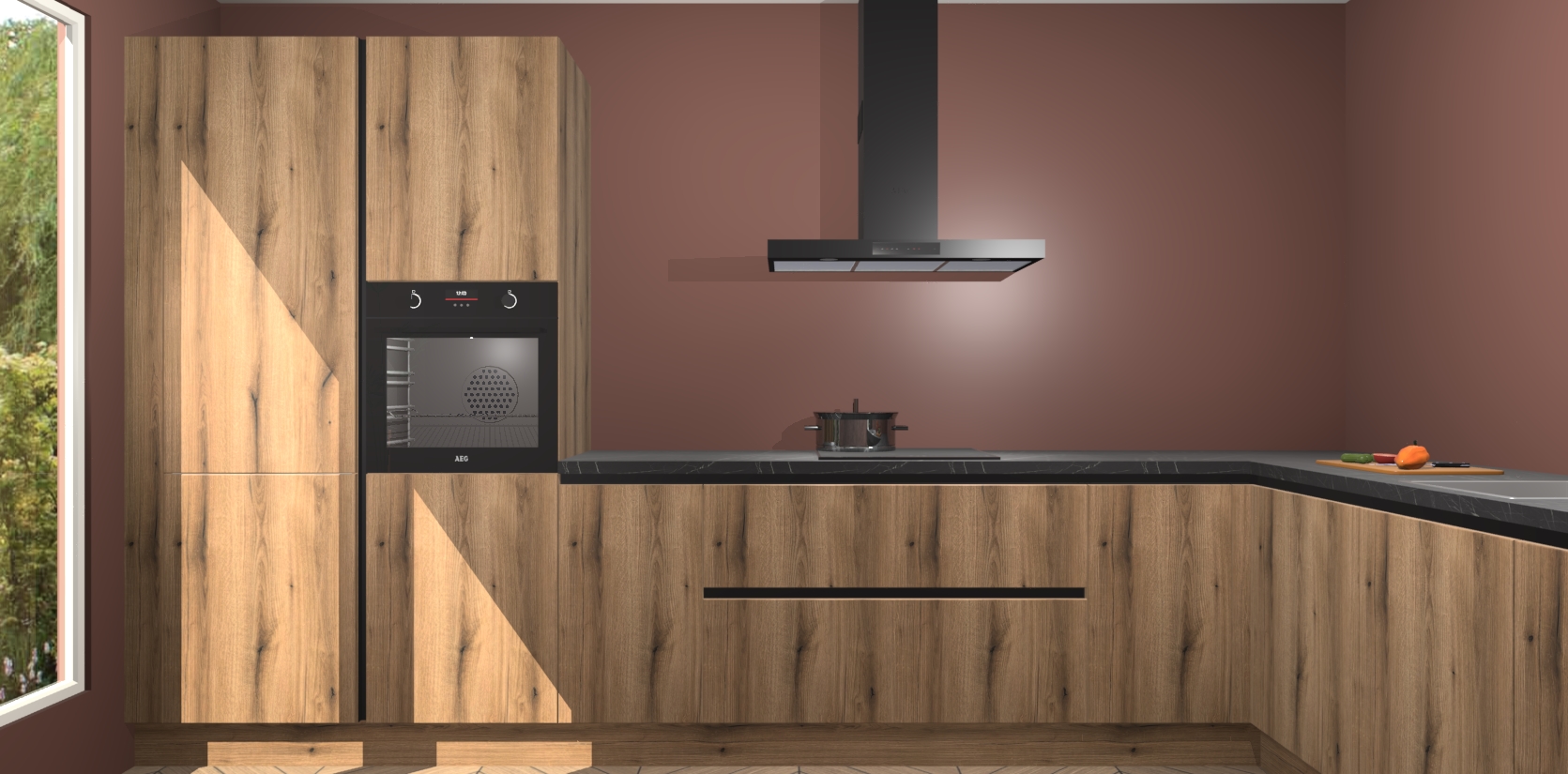 Met een modern, tijdloos design en ruime opslagruimte, zult u zich in no-time thuis voelen in uw nieuwe keuken. Uw leven wordt eenvoudiger met de soft-close deuren die voor het ultieme stille comfort zorgen - geen geluid dat u stoort terwijl u kookt. Ook is de keuken voorzien van 5 ingebouwde apparaten: een oven, inductie kookplaat, afzuigkap, vaatwasser en koelkast. Deze kunnen gemakkelijk na bestelling worden bijgewerkt naar AEG - waardoor uw luxe ervaring compleet is.