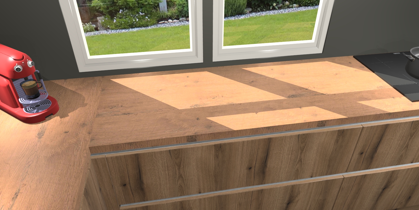 - Bij een hoekwerkblad zijn de hoeken in gevreesd en op maat gemaakt