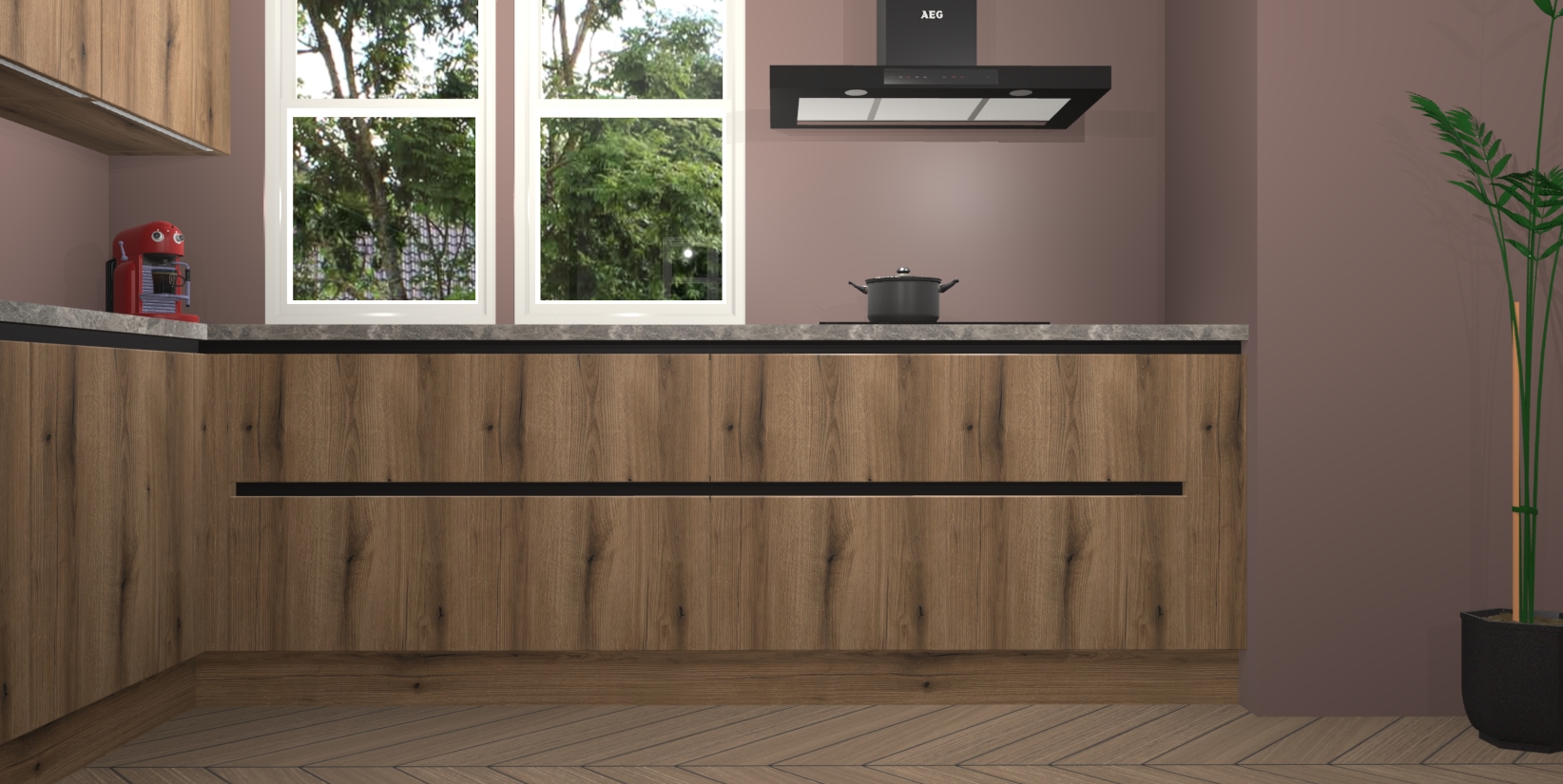Goud Eiken greeploze keuken Opole zal u de adem benemen met zijn moderne en strakke look!