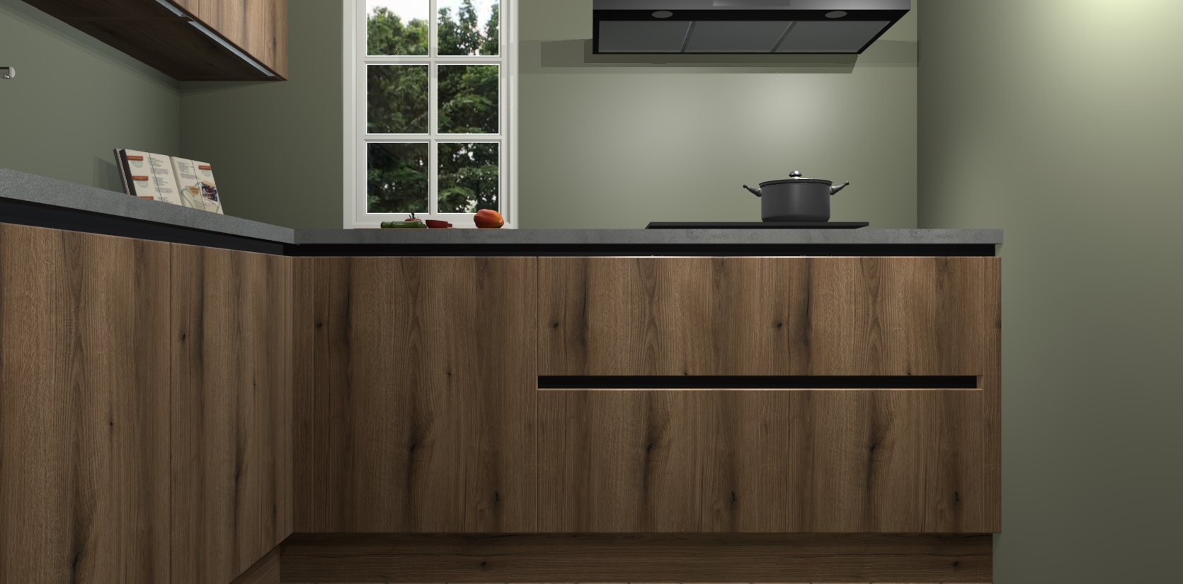 In deze box zijn alle kleuren verzameld van de deuren en werkbladen. Vraag de gratis kleurenbox aan en kijk thuis rustig verder!