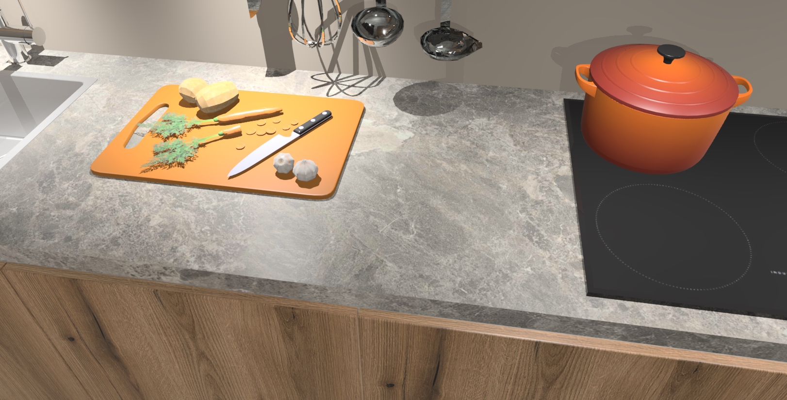 - Uitsparing van kookplaat, spoelbak en kraan dient u zelf te verzorgen.