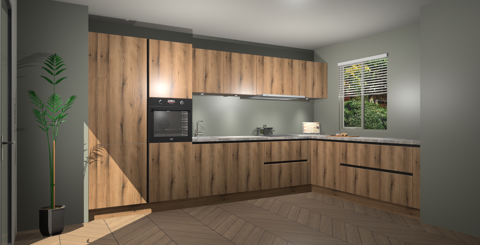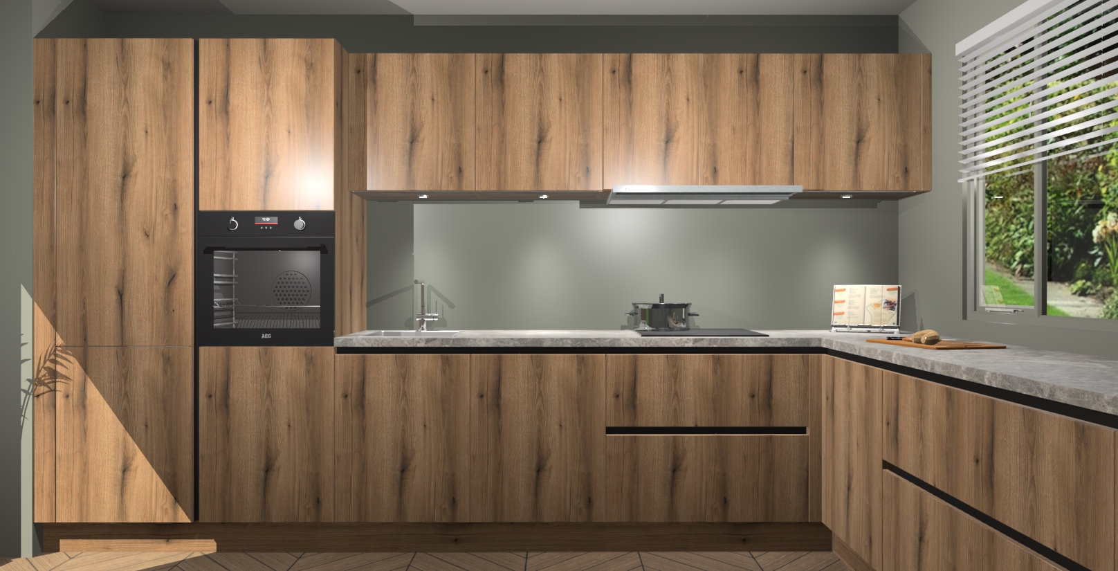 Verwelkom de natuurlijke warmte van de Goud Eiken greeploze keuken Petten in uw huis. Deze prachtige hoekkeuken met zijn moderne design en warme houten look geeft u meer dan genoeg opbergruimte om uw comfortabel te voelen in uw keuken. Geniet van soft-close deuren die al uw gasten het gevoel zullen geven dat ze zich in een luxueuze ruimte bevinden.