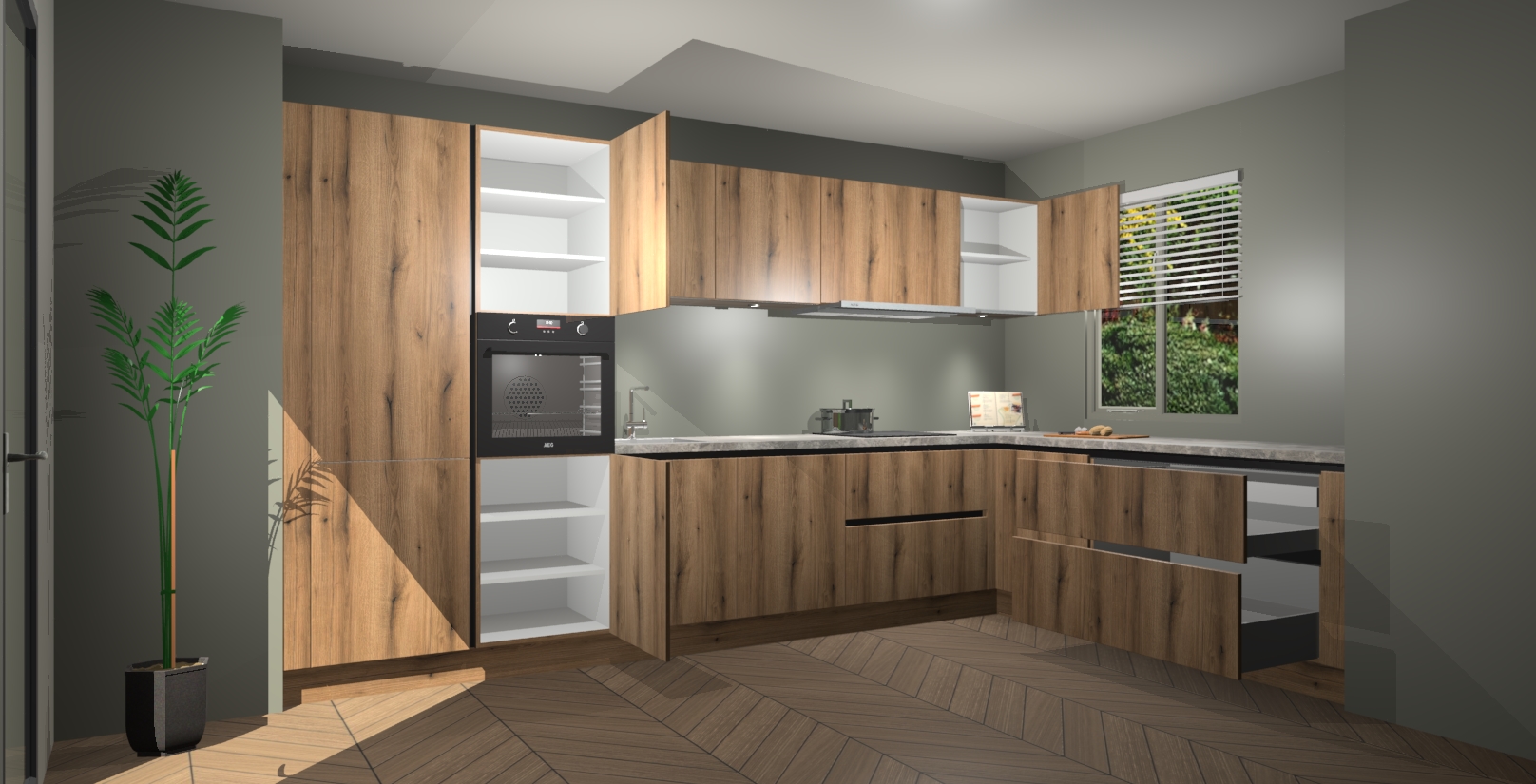 Inclusief plinten, stelpoten en werkblad