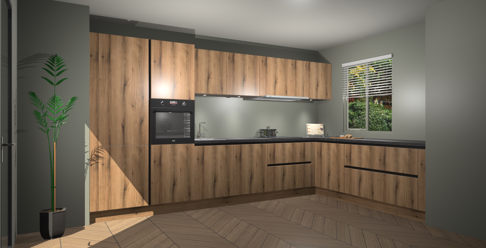 Verwelkom de natuurlijke warmte van de Goud Eiken greeploze keuken Petten in uw huis. Deze prachtige hoekkeuken met zijn moderne design en warme houten look geeft u meer dan genoeg opbergruimte om uw comfortabel te voelen in uw keuken. Geniet van soft-close deuren die al uw gasten het gevoel zullen geven dat ze zich in een luxueuze ruimte bevinden.
