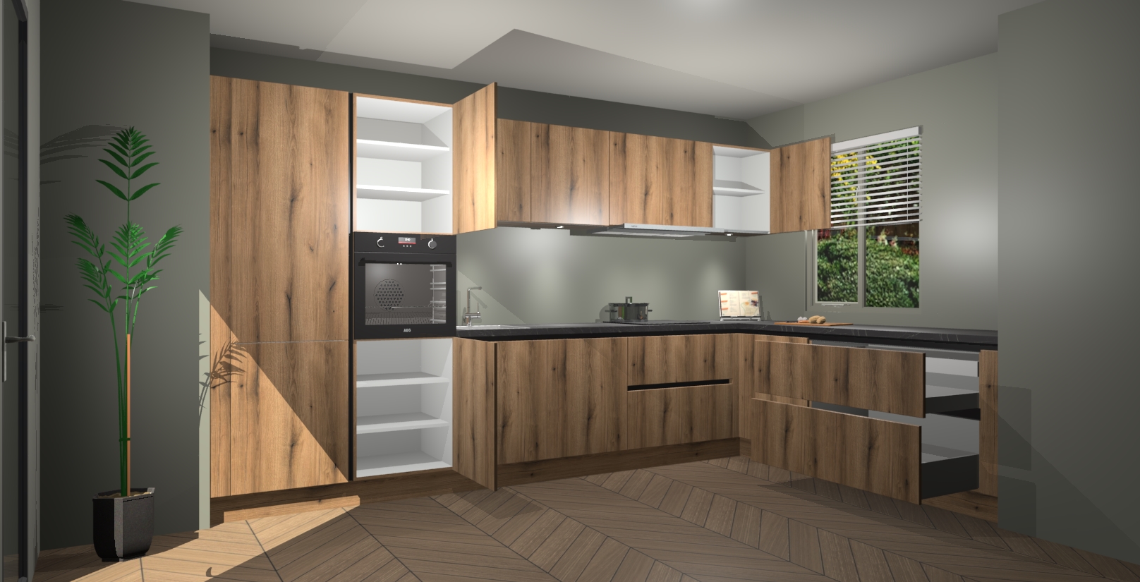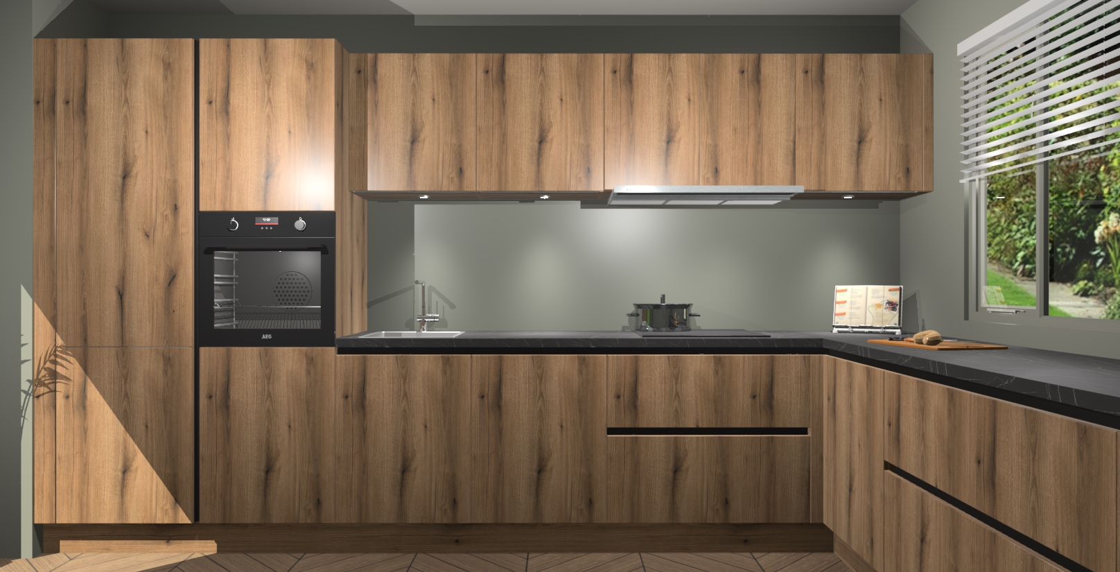 Uw droom van een sprookje binnenshuis is nu binnen handbereik met 5 inbouwapparaten in dit complete pakket: een oven, inductiekookplaat, afzuigkap, vaatwasser en koelkast! Haal deze geraffineerde en warme sfeer nu sneller in huis dan normaal - wij garanderen een snelle levering binnen 7 weken.