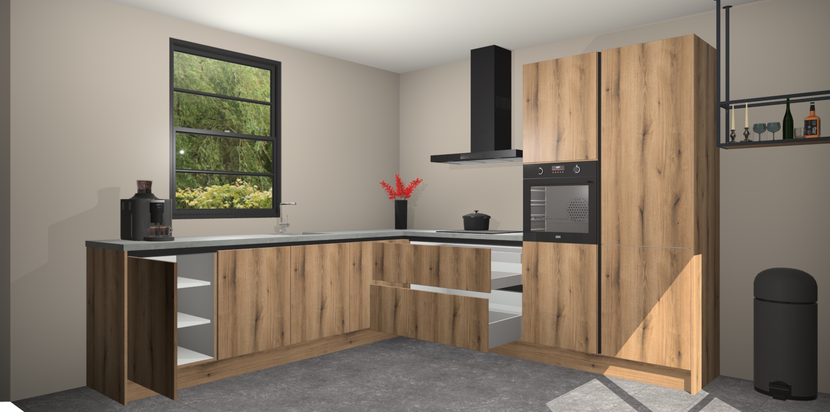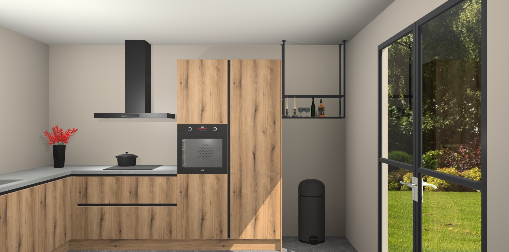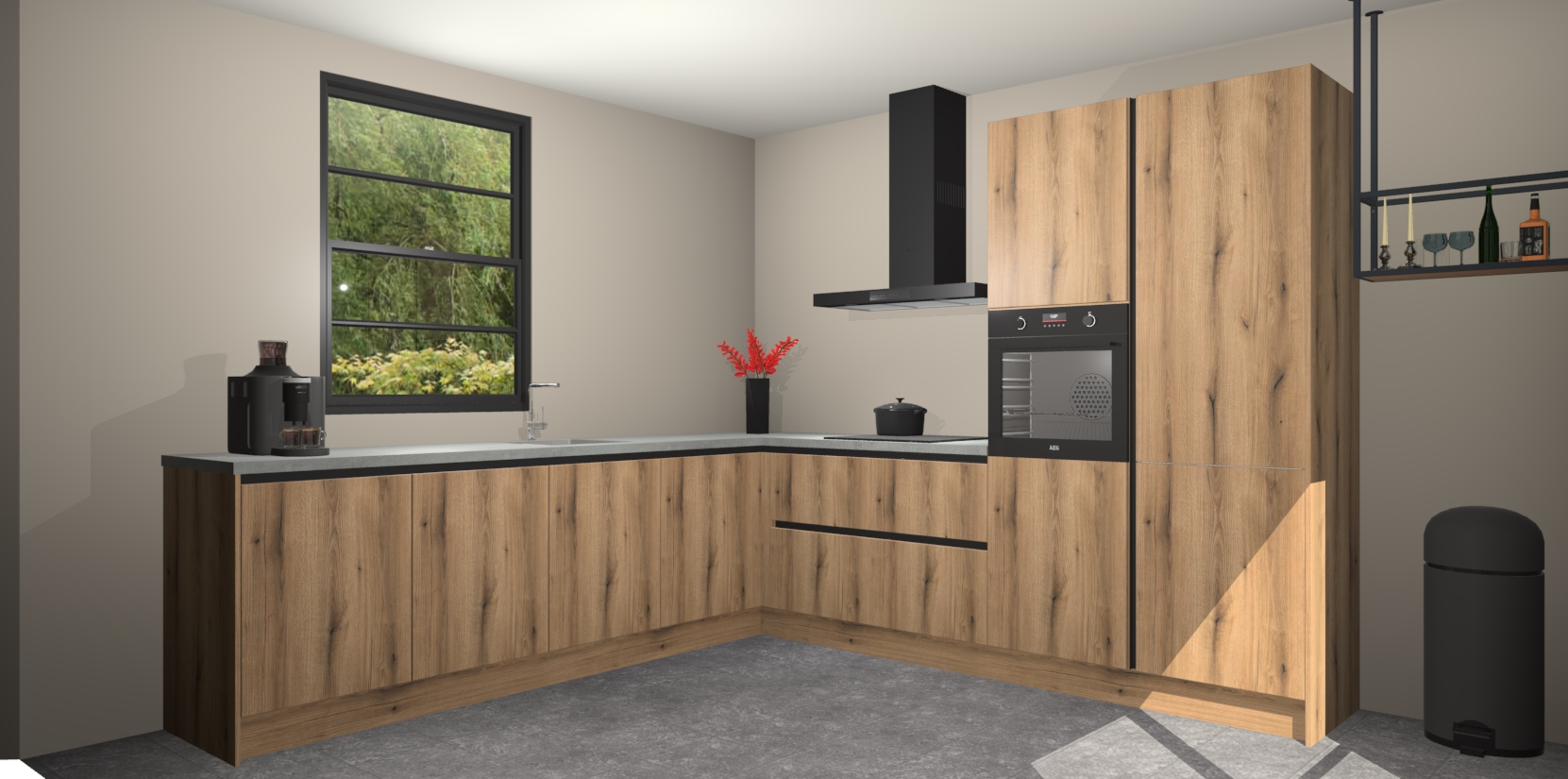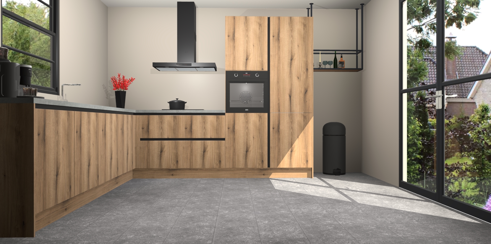 De Goud Eiken greeploze keuken Porto heeft 5 ingebouwde apparaten - een oven, inductiekookplaat, afzuigkap, vaatwasser en koelkast - waarmee u in een handomdraai heerlijke gerechten bereidt. Soft-close deuren zorgen voor nog meer functionaliteit en gemak. En dit alles voor een onverslaanbaar vaste prijs. En als u nu bestelt, duurt de levering maar 7 weken! Wat nog ongelooflijker is, is dat onze kasten voor gemonteerd worden geleverd.
