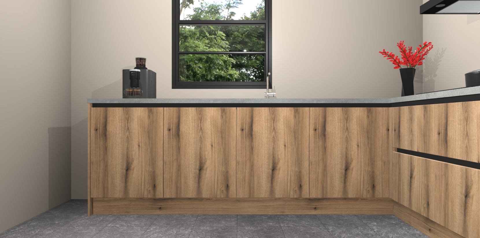 Als u op zoek bent naar stijl in combinatie met optimale efficiëntie, dan is de Goud Eiken greeploze keuken Porto de perfecte keuze voor elk modern huis. Plaats vandaag nog uw bestelling en begin met koken in uw nieuwe keuken voor u het weet!