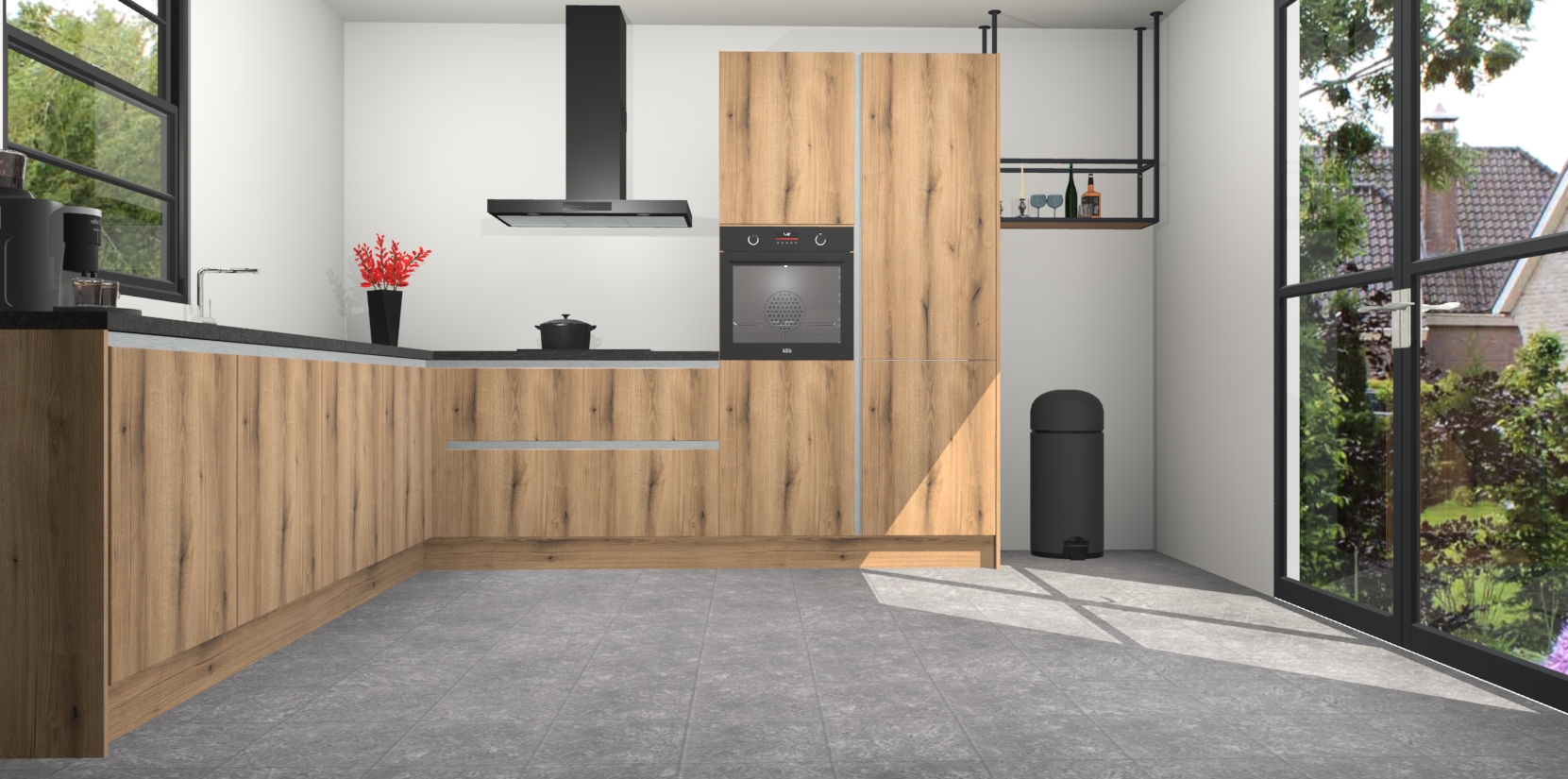 De Goud Eiken greeploze keuken Porto heeft 5 ingebouwde apparaten - een oven, inductiekookplaat, afzuigkap, vaatwasser en koelkast - waarmee u in een handomdraai heerlijke gerechten bereidt. Soft-close deuren zorgen voor nog meer functionaliteit en gemak. En dit alles voor een onverslaanbaar vaste prijs. En als u nu bestelt, duurt de levering maar 7 weken! Wat nog ongelooflijker is, is dat onze kasten voor gemonteerd worden geleverd.