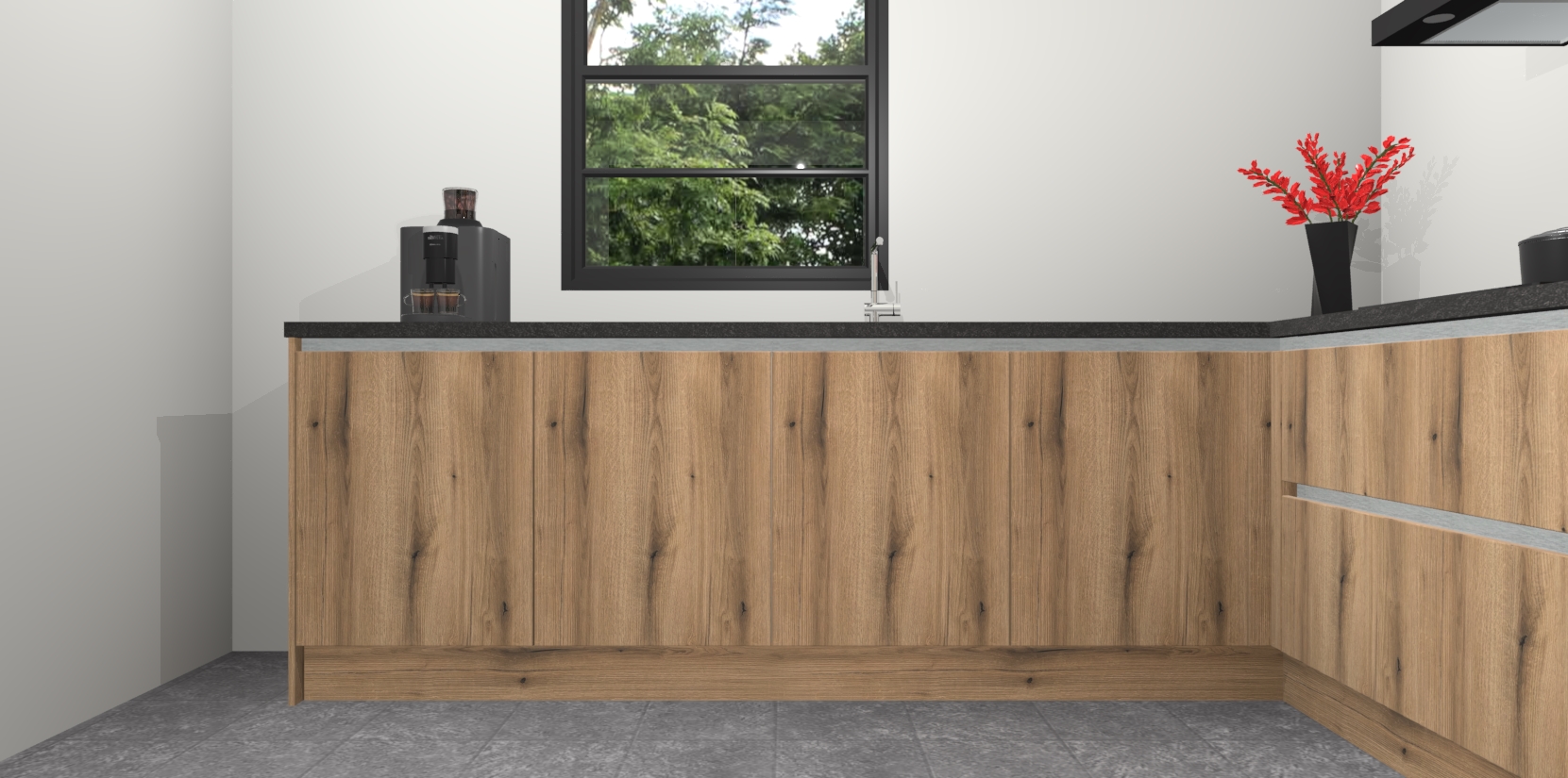 Als u op zoek bent naar stijl in combinatie met optimale efficiëntie, dan is de Goud Eiken greeploze keuken Porto de perfecte keuze voor elk modern huis. Plaats vandaag nog uw bestelling en begin met koken in uw nieuwe keuken voor u het weet!
