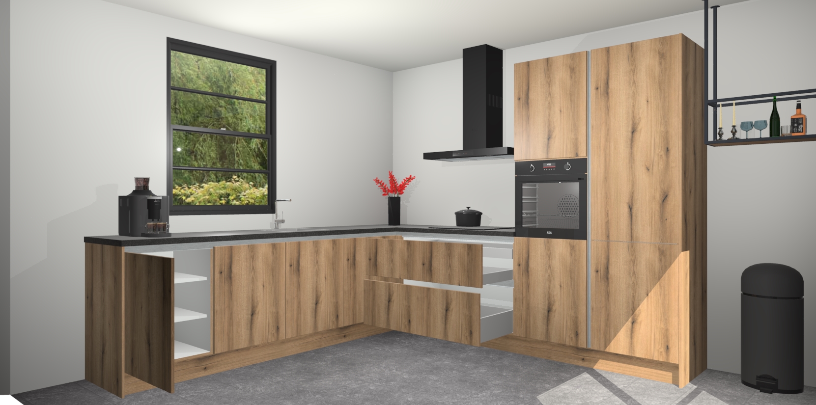 Nederlandse keukens worden niet comfortabeler dan de Goud Eiken greeploze keuken Porto! Deze prachtige en unieke keuken straalt sfeer uit en biedt tegelijkertijd praktische opbergoplossingen. Of u nu een meester-kok bent of een culinaire amateur, dit is de ideale keuze voor u! Deze keuken is ideaal voor grote gezinnen, huizen met veel gasten - of iedereen die graag thuis is - en heeft genoeg functies om uw gezin te voeden.