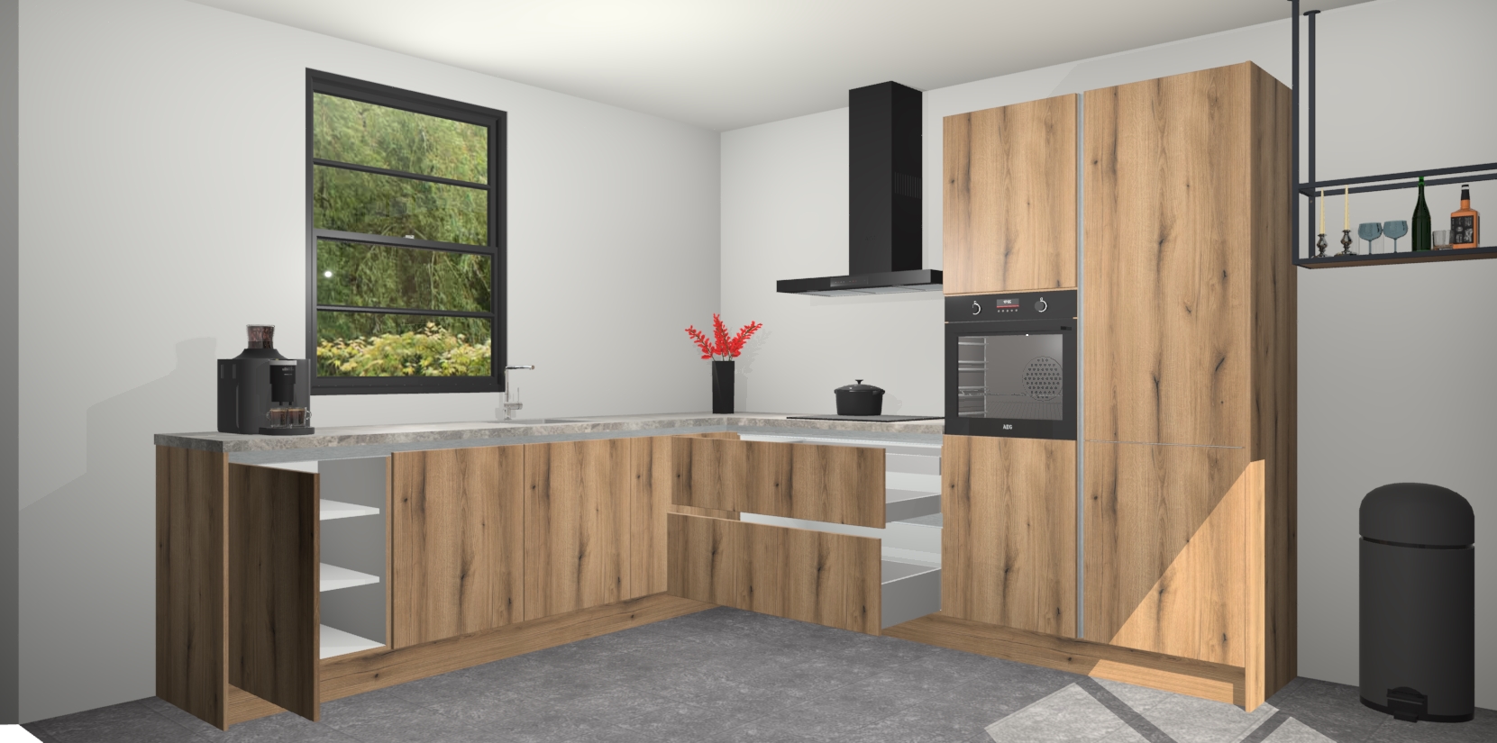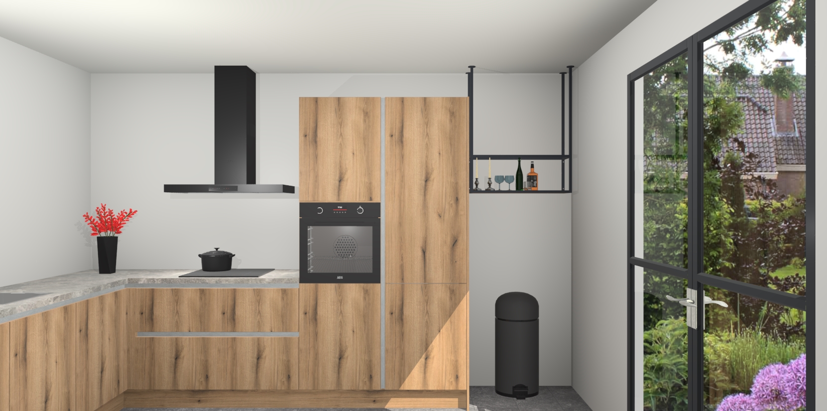 De Goud Eiken greeploze keuken Porto heeft 5 ingebouwde apparaten - een oven, inductiekookplaat, afzuigkap, vaatwasser en koelkast - waarmee u in een handomdraai heerlijke gerechten bereidt. Soft-close deuren zorgen voor nog meer functionaliteit en gemak. En dit alles voor een onverslaanbaar vaste prijs. En als u nu bestelt, duurt de levering maar 7 weken! Wat nog ongelooflijker is, is dat onze kasten voor gemonteerd worden geleverd.