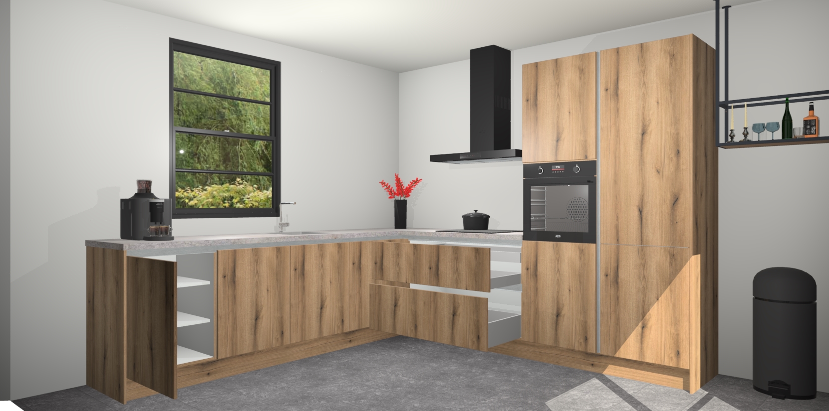 Nederlandse keukens worden niet comfortabeler dan de Goud Eiken greeploze keuken Porto! Deze prachtige en unieke keuken straalt sfeer uit en biedt tegelijkertijd praktische opbergoplossingen. Of u nu een meester-kok bent of een culinaire amateur, dit is de ideale keuze voor u! Deze keuken is ideaal voor grote gezinnen, huizen met veel gasten - of iedereen die graag thuis is - en heeft genoeg functies om uw gezin te voeden.