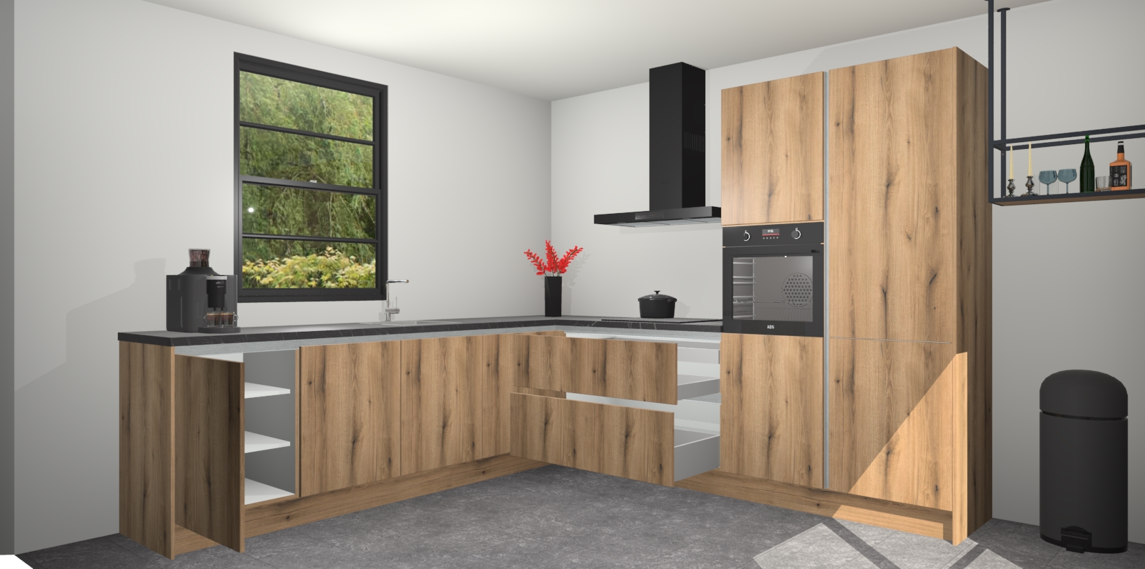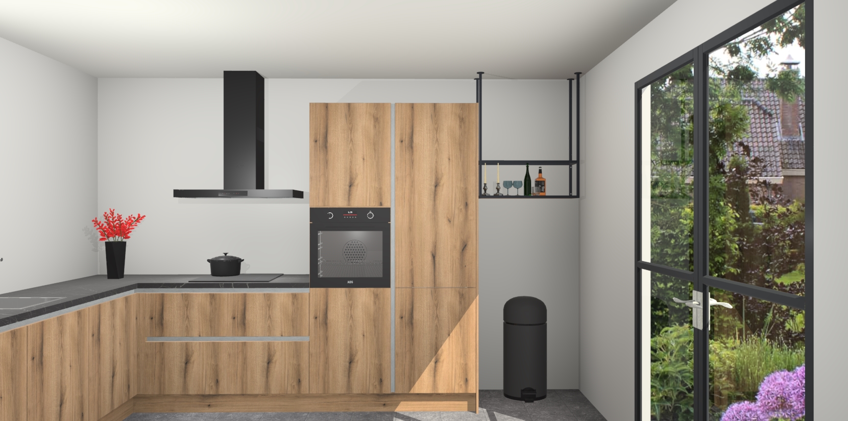De Goud Eiken greeploze keuken Porto heeft 5 ingebouwde apparaten - een oven, inductiekookplaat, afzuigkap, vaatwasser en koelkast - waarmee u in een handomdraai heerlijke gerechten bereidt. Soft-close deuren zorgen voor nog meer functionaliteit en gemak. En dit alles voor een onverslaanbaar vaste prijs. En als u nu bestelt, duurt de levering maar 7 weken! Wat nog ongelooflijker is, is dat onze kasten voor gemonteerd worden geleverd.