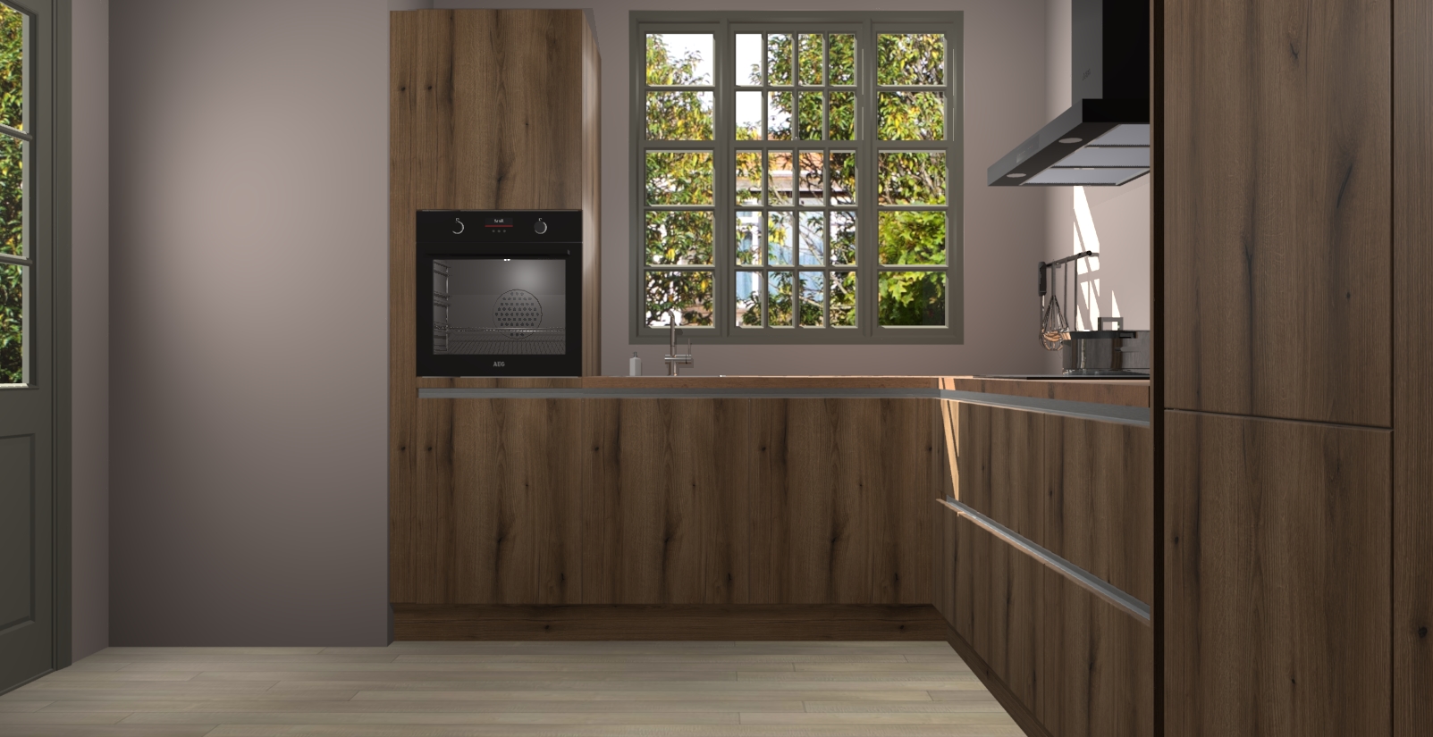 Met een modern, tijdloos design en ruime opslagruimte, zult u zich in no-time thuis voelen in uw nieuwe keuken. Uw leven wordt eenvoudiger met de soft-close deuren die voor het ultieme stille comfort zorgen - geen geluid dat u stoort terwijl u kookt. Ook is de keuken voorzien van 5 ingebouwde apparaten: een oven, inductie kookplaat, afzuigkap, vaatwasser en koelkast. Deze kunnen gemakkelijk na bestelling worden bijgewerkt naar AEG - waardoor uw luxe ervaring compleet is.