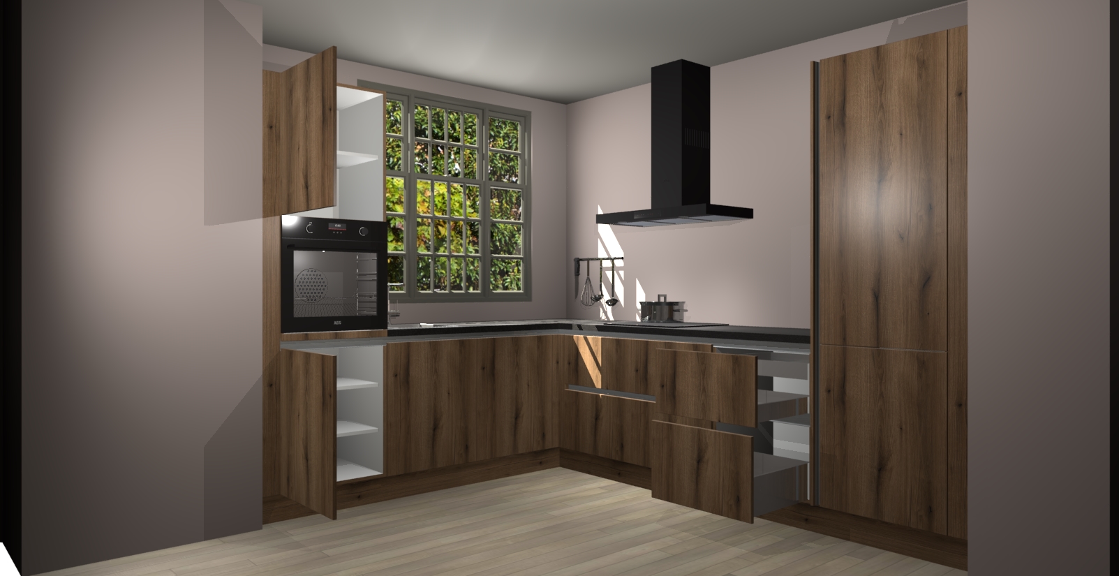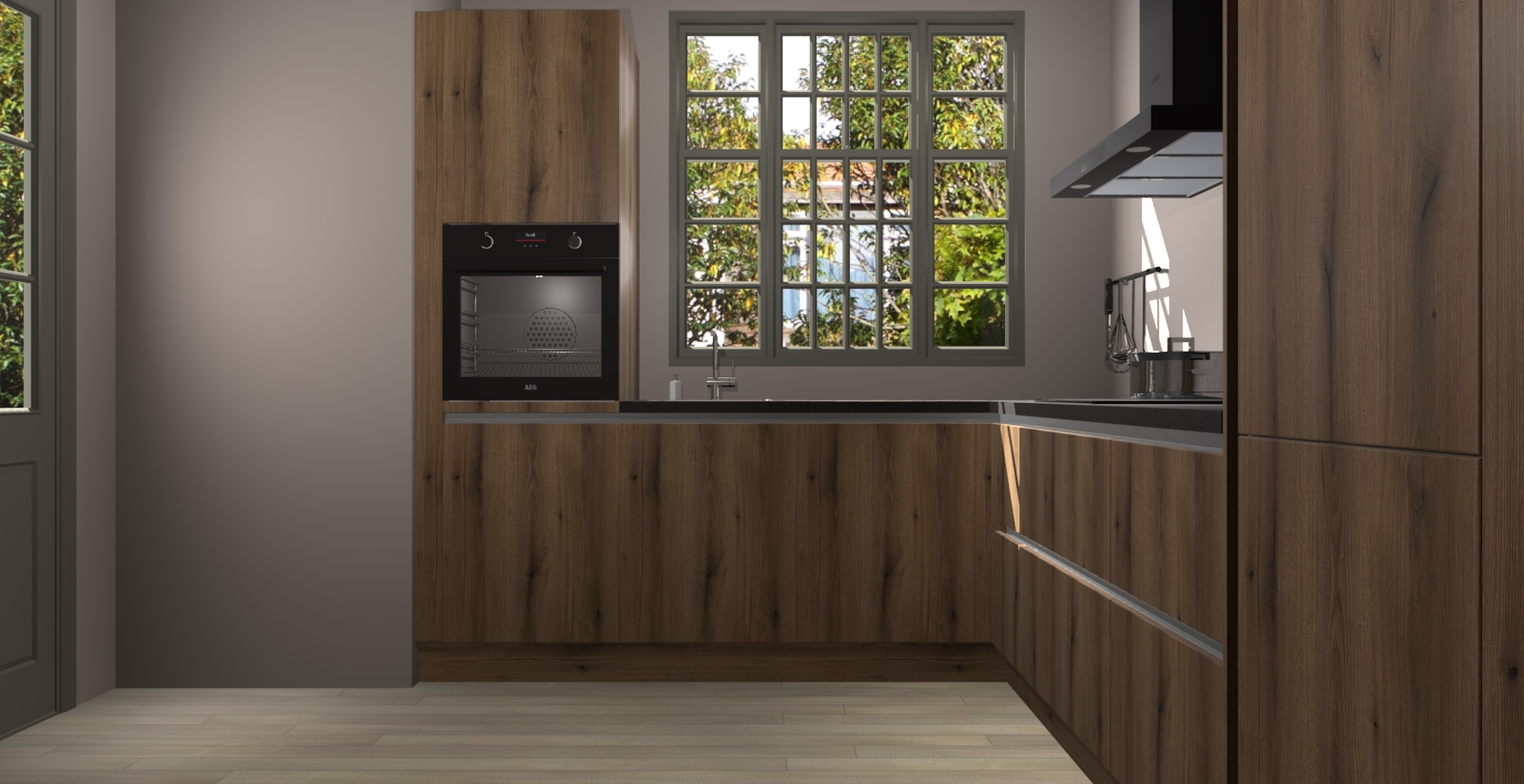 Met een modern, tijdloos design en ruime opslagruimte, zult u zich in no-time thuis voelen in uw nieuwe keuken. Uw leven wordt eenvoudiger met de soft-close deuren die voor het ultieme stille comfort zorgen - geen geluid dat u stoort terwijl u kookt. Ook is de keuken voorzien van 5 ingebouwde apparaten: een oven, inductie kookplaat, afzuigkap, vaatwasser en koelkast. Deze kunnen gemakkelijk na bestelling worden bijgewerkt naar AEG - waardoor uw luxe ervaring compleet is.