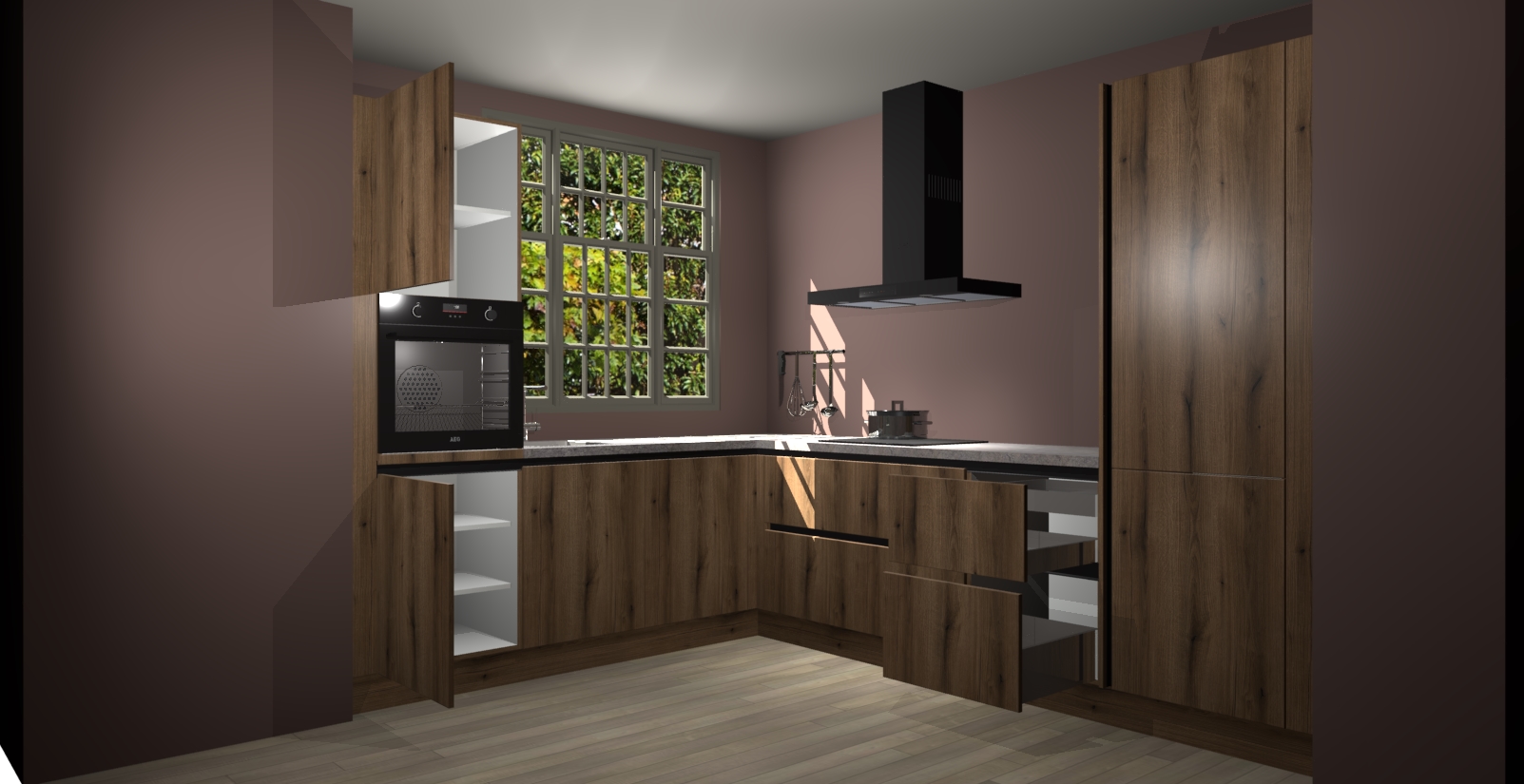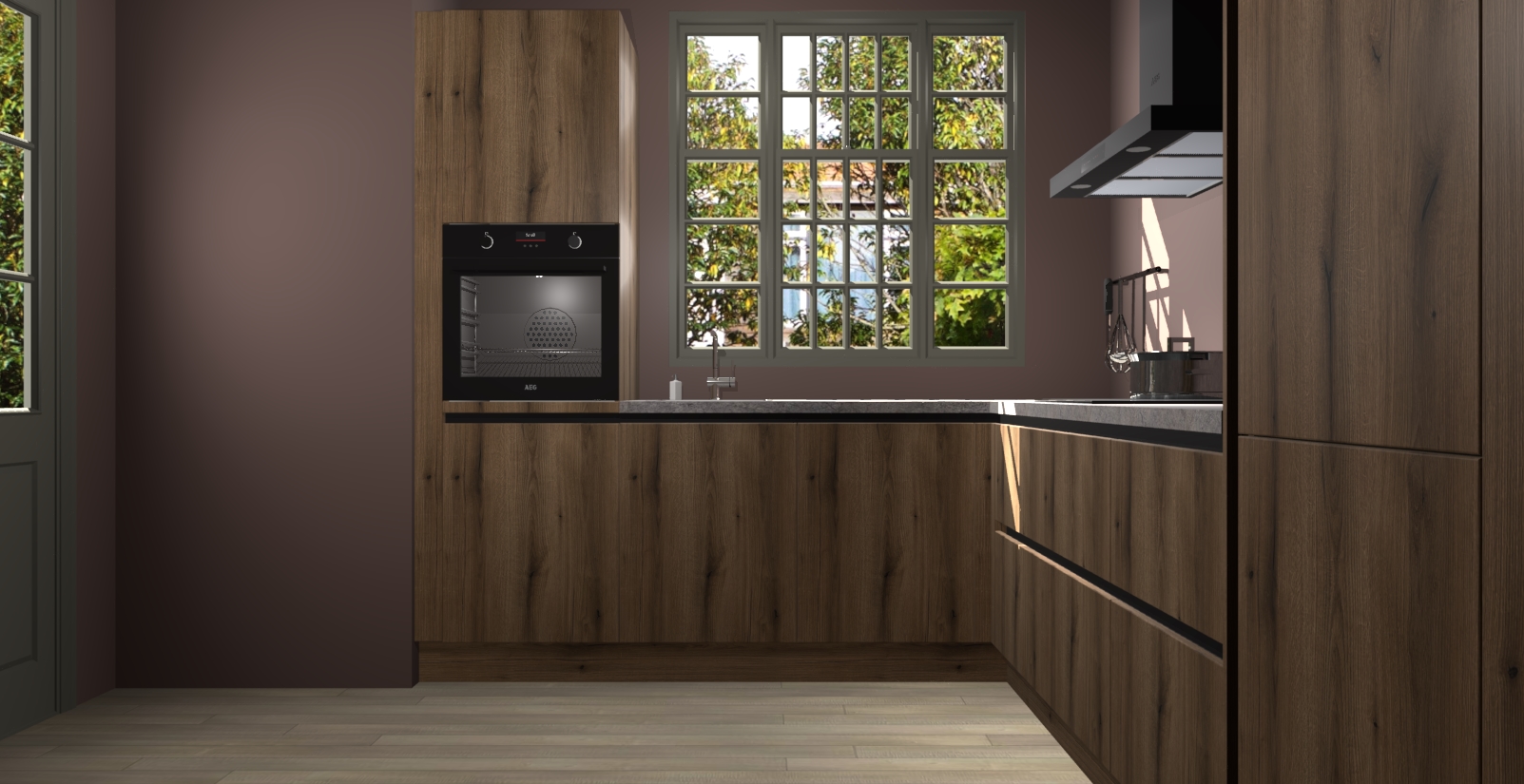 Met een modern, tijdloos design en ruime opslagruimte, zult u zich in no-time thuis voelen in uw nieuwe keuken. Uw leven wordt eenvoudiger met de soft-close deuren die voor het ultieme stille comfort zorgen - geen geluid dat u stoort terwijl u kookt. Ook is de keuken voorzien van 5 ingebouwde apparaten: een oven, inductie kookplaat, afzuigkap, vaatwasser en koelkast. Deze kunnen gemakkelijk na bestelling worden bijgewerkt naar AEG - waardoor uw luxe ervaring compleet is.