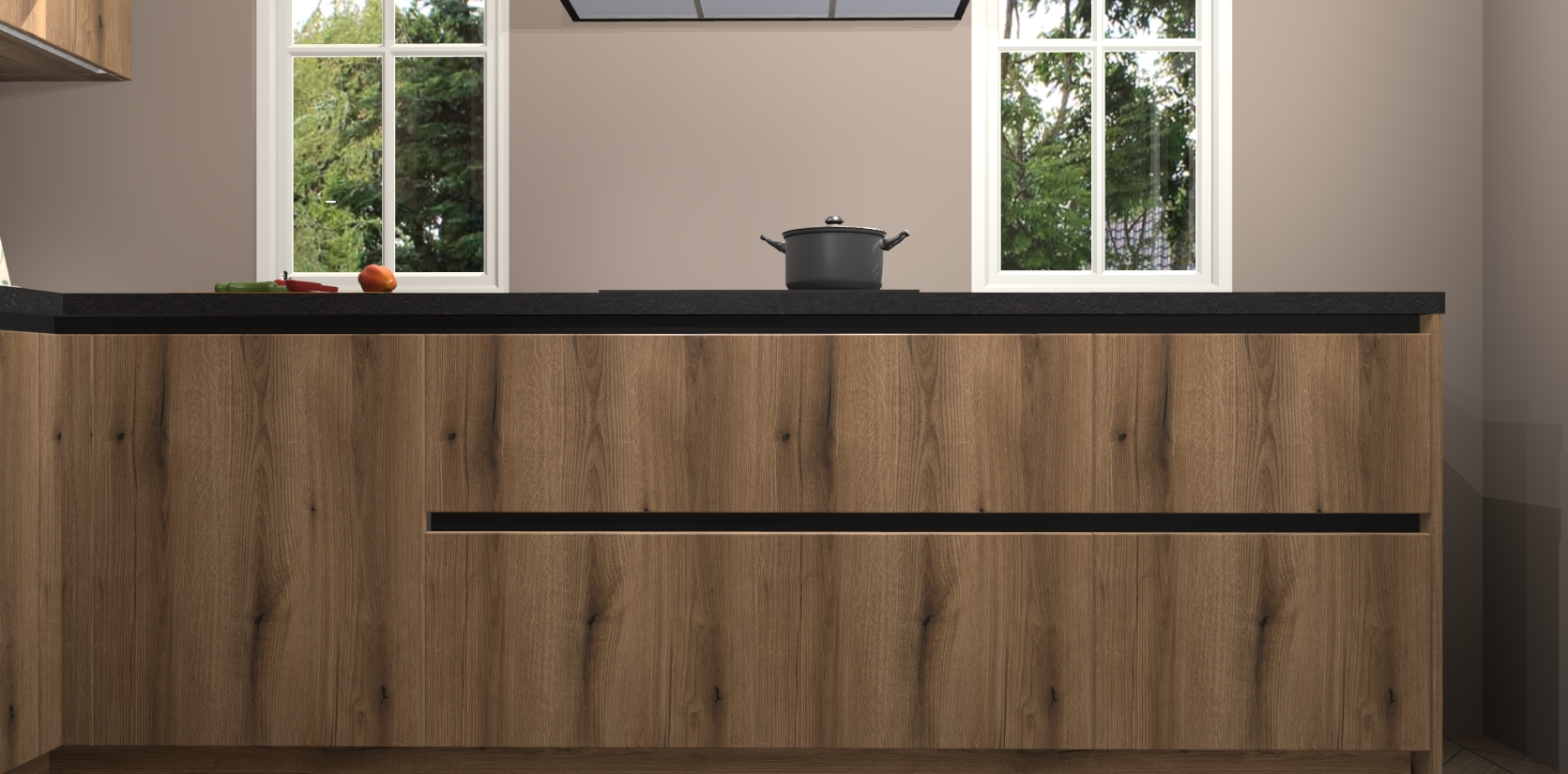 In deze box zijn alle kleuren verzameld van de deuren en werkbladen. Vraag de gratis kleurenbox aan en kijk thuis rustig verder!