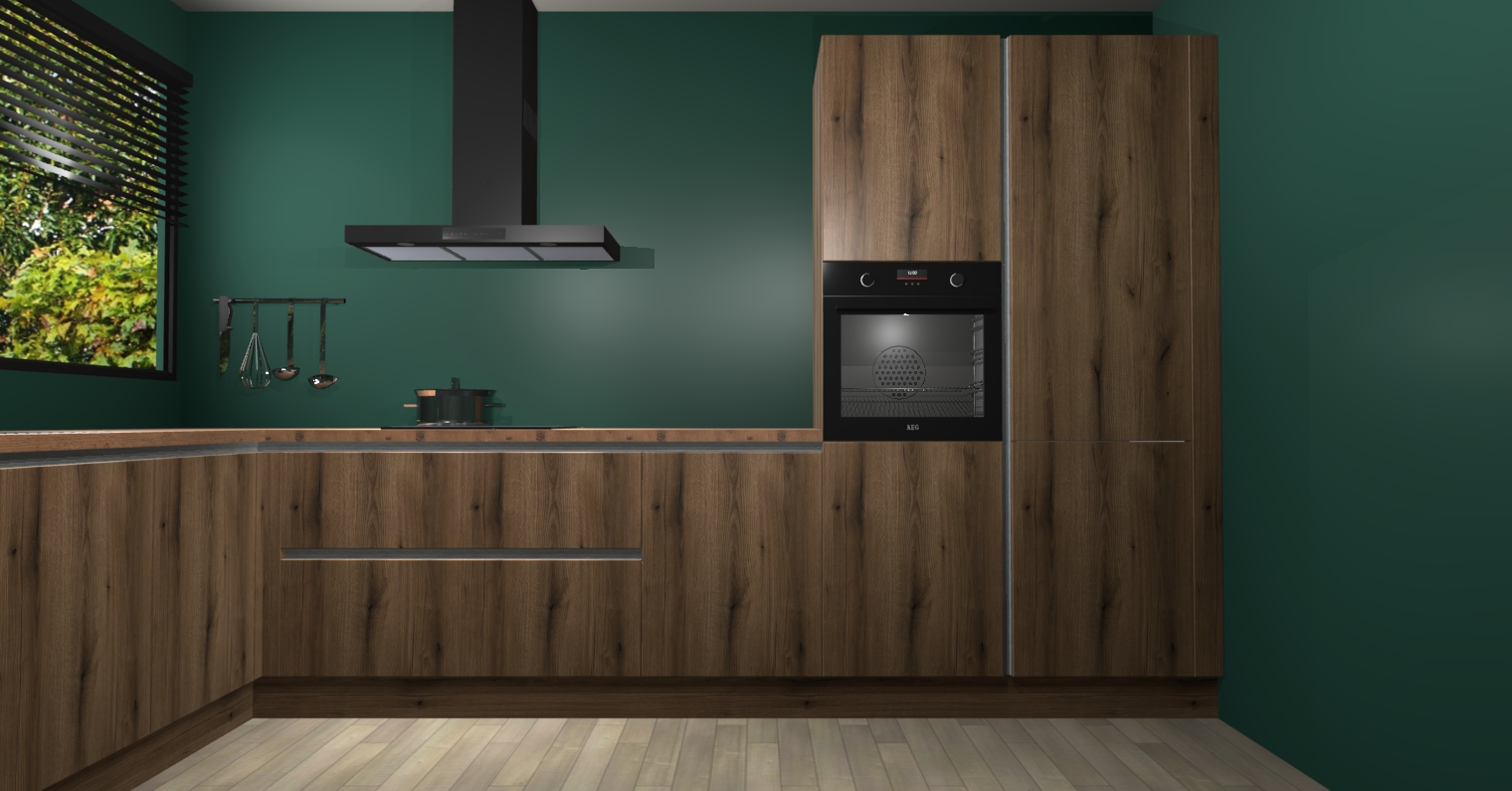 Met een modern, tijdloos design en ruime opslagruimte, zult u zich in no-time thuis voelen in uw nieuwe keuken. Uw leven wordt eenvoudiger met de soft-close deuren die voor het ultieme stille comfort zorgen - geen geluid dat u stoort terwijl u kookt. Ook is de keuken voorzien van 5 ingebouwde apparaten: een oven, inductie kookplaat, afzuigkap, vaatwasser en koelkast. Deze kunnen gemakkelijk na bestelling worden bijgewerkt naar AEG - waardoor uw luxe ervaring compleet is.