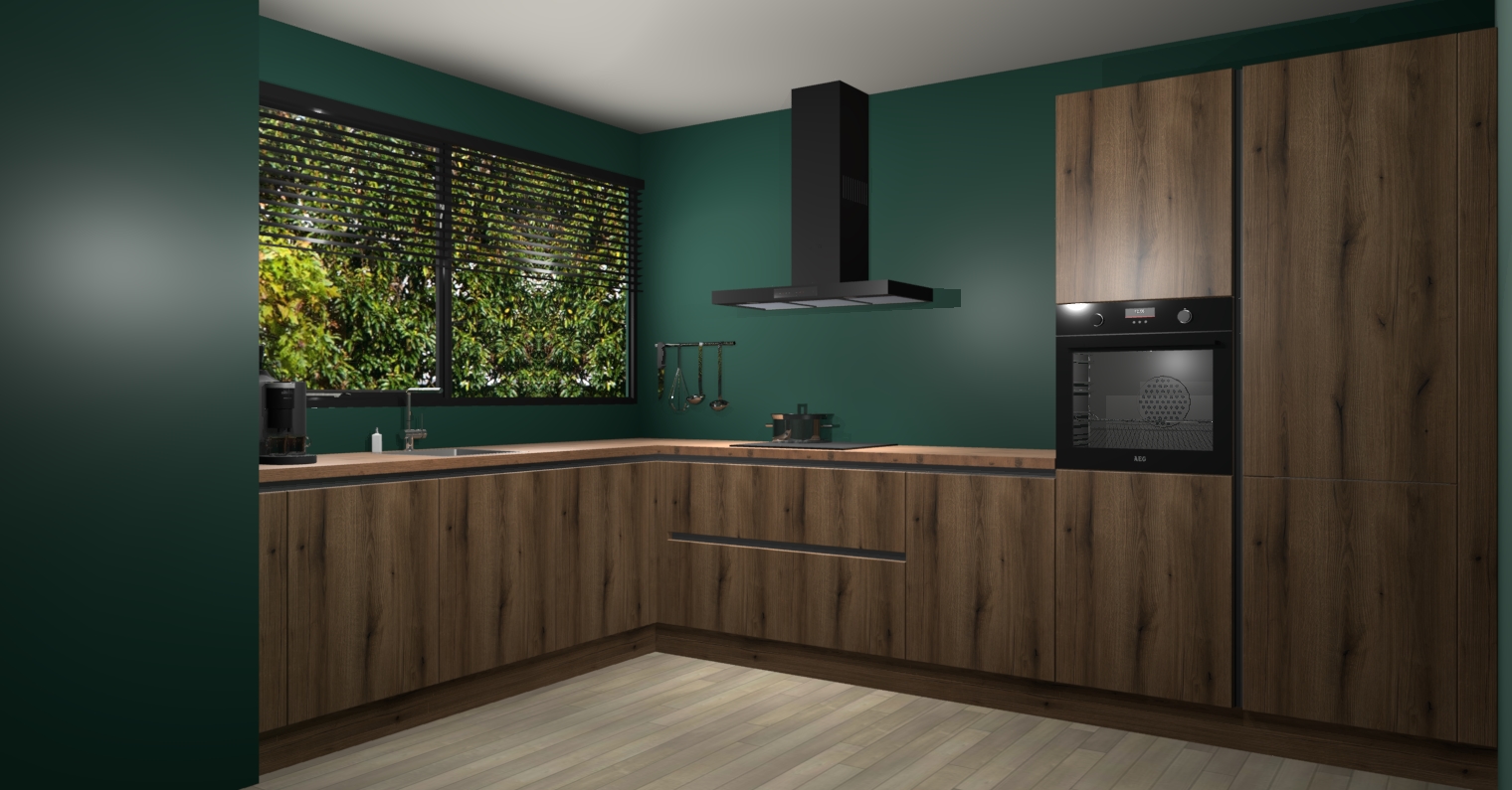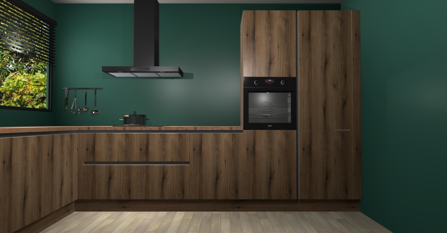 Met een modern, tijdloos design en ruime opslagruimte, zult u zich in no-time thuis voelen in uw nieuwe keuken. Uw leven wordt eenvoudiger met de soft-close deuren die voor het ultieme stille comfort zorgen - geen geluid dat u stoort terwijl u kookt. Ook is de keuken voorzien van 5 ingebouwde apparaten: een oven, inductie kookplaat, afzuigkap, vaatwasser en koelkast. Deze kunnen gemakkelijk na bestelling worden bijgewerkt naar AEG - waardoor uw luxe ervaring compleet is.