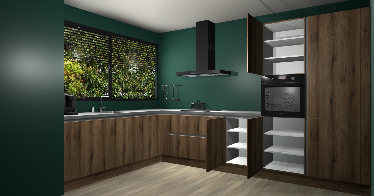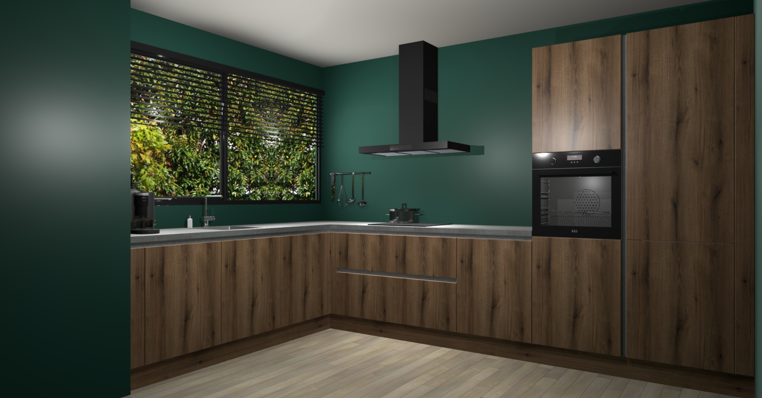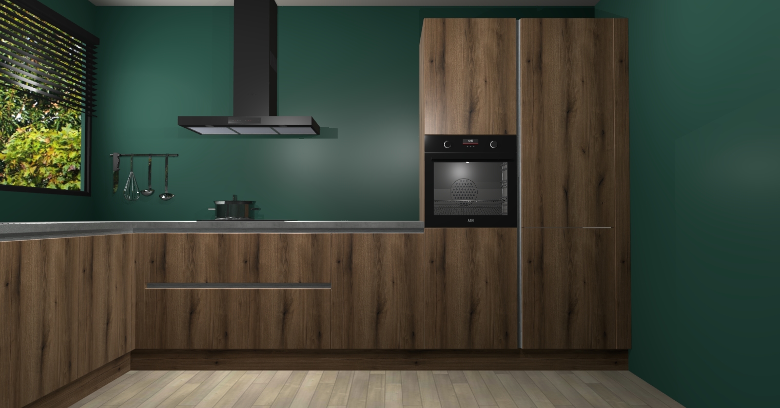 Met een modern, tijdloos design en ruime opslagruimte, zult u zich in no-time thuis voelen in uw nieuwe keuken. Uw leven wordt eenvoudiger met de soft-close deuren die voor het ultieme stille comfort zorgen - geen geluid dat u stoort terwijl u kookt. Ook is de keuken voorzien van 5 ingebouwde apparaten: een oven, inductie kookplaat, afzuigkap, vaatwasser en koelkast. Deze kunnen gemakkelijk na bestelling worden bijgewerkt naar AEG - waardoor uw luxe ervaring compleet is.
