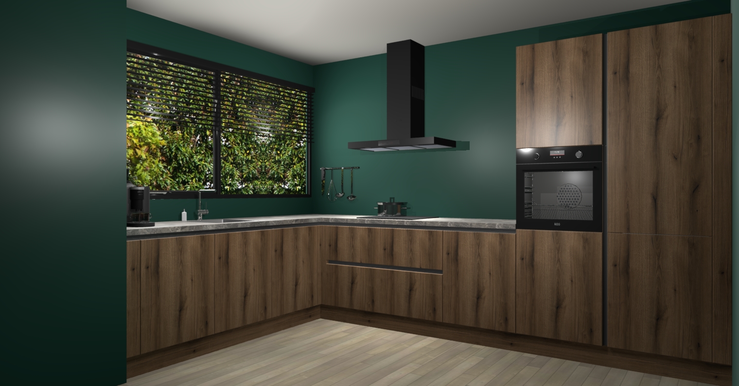 Met een modern, tijdloos design en ruime opslagruimte, zult u zich in no-time thuis voelen in uw nieuwe keuken. Uw leven wordt eenvoudiger met de soft-close deuren die voor het ultieme stille comfort zorgen - geen geluid dat u stoort terwijl u kookt. Ook is de keuken voorzien van 5 ingebouwde apparaten: een oven, inductie kookplaat, afzuigkap, vaatwasser en koelkast. Deze kunnen gemakkelijk na bestelling worden bijgewerkt naar AEG - waardoor uw luxe ervaring compleet is.
