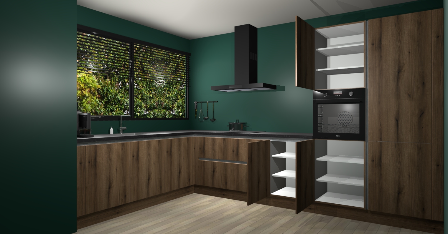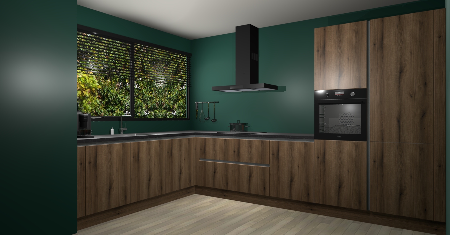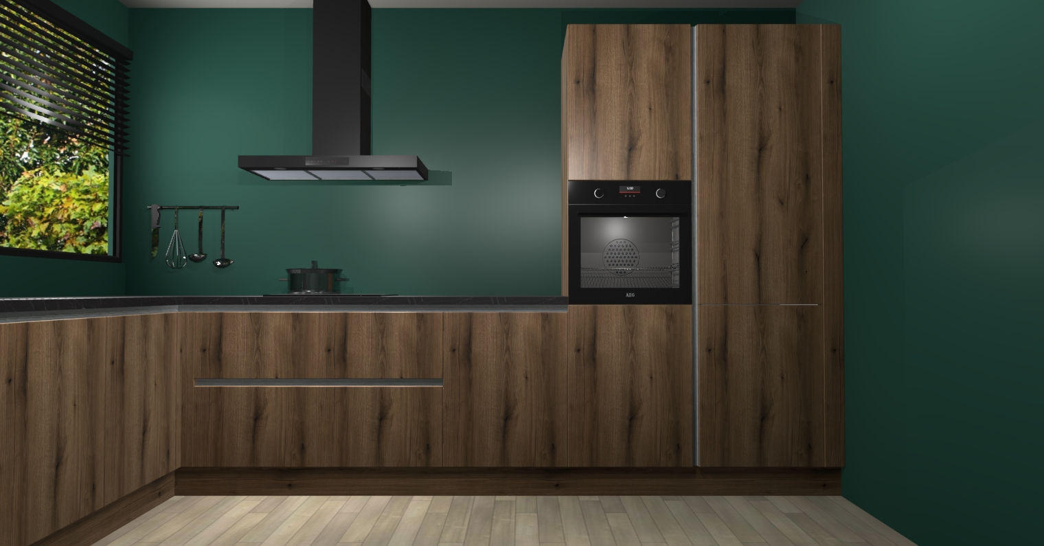 Met een modern, tijdloos design en ruime opslagruimte, zult u zich in no-time thuis voelen in uw nieuwe keuken. Uw leven wordt eenvoudiger met de soft-close deuren die voor het ultieme stille comfort zorgen - geen geluid dat u stoort terwijl u kookt. Ook is de keuken voorzien van 5 ingebouwde apparaten: een oven, inductie kookplaat, afzuigkap, vaatwasser en koelkast. Deze kunnen gemakkelijk na bestelling worden bijgewerkt naar AEG - waardoor uw luxe ervaring compleet is.
