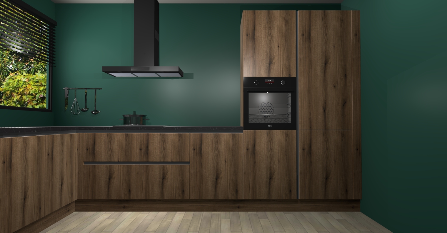 Met een modern, tijdloos design en ruime opslagruimte, zult u zich in no-time thuis voelen in uw nieuwe keuken. Uw leven wordt eenvoudiger met de soft-close deuren die voor het ultieme stille comfort zorgen - geen geluid dat u stoort terwijl u kookt. Ook is de keuken voorzien van 5 ingebouwde apparaten: een oven, inductie kookplaat, afzuigkap, vaatwasser en koelkast. Deze kunnen gemakkelijk na bestelling worden bijgewerkt naar AEG - waardoor uw luxe ervaring compleet is.
