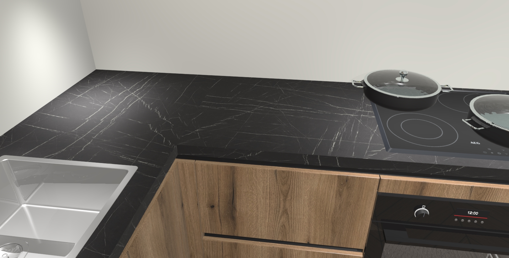 - Bij een hoekwerkblad zijn de hoeken in gevreesd en op maat gemaakt
