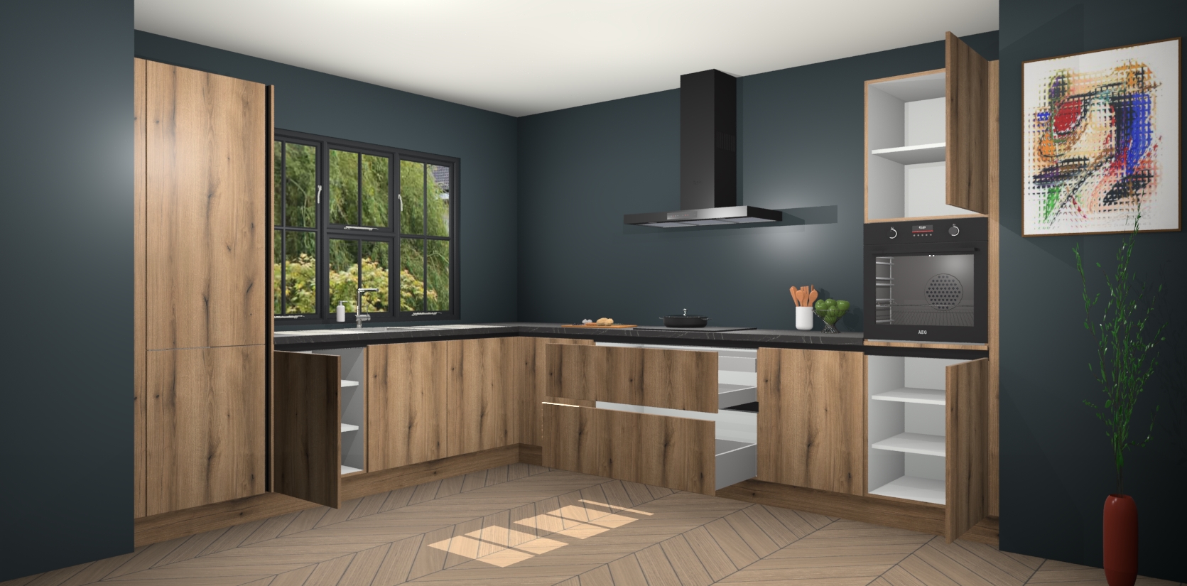 In deze box zijn alle kleuren verzameld van de deuren en werkbladen. Vraag de gratis kleurenbox aan en kijk thuis rustig verder!